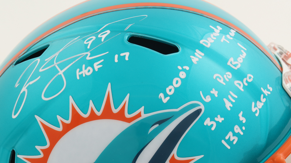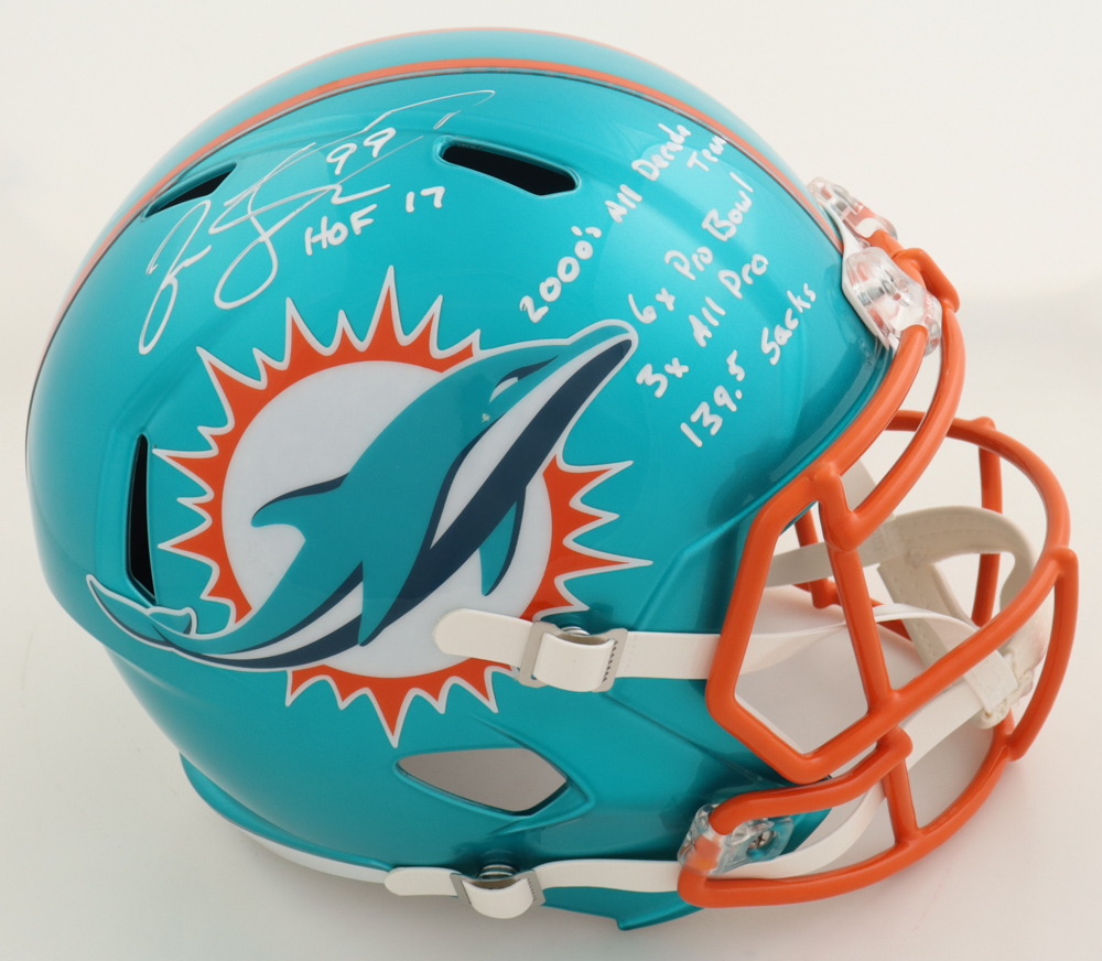 Jason Taylor Signed Dolphins Full-Size Flash Alternate Speed Helmet with Multiple Career Inscriptions (JSA)