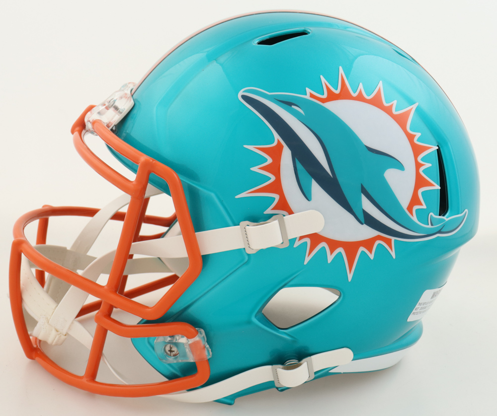 Riddell Miami Dolphins full-size replica flash alternate speed Helmet. Hand-signed and inscribed by Jason Taylor (HOF).