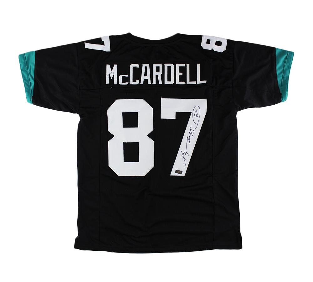 Custom style jersey. Everything sewn on, size XL. Hand-signed by Keenan McCardell.