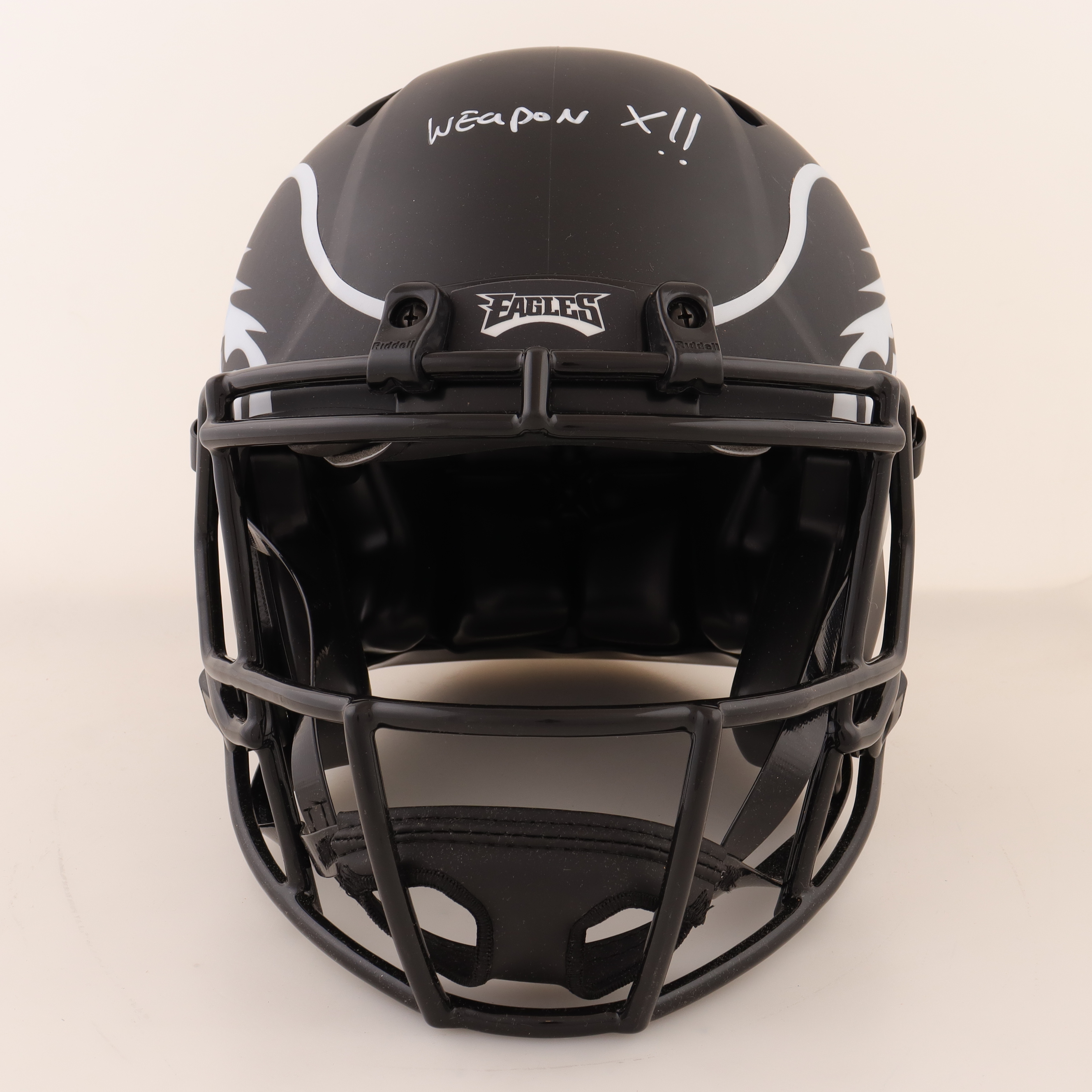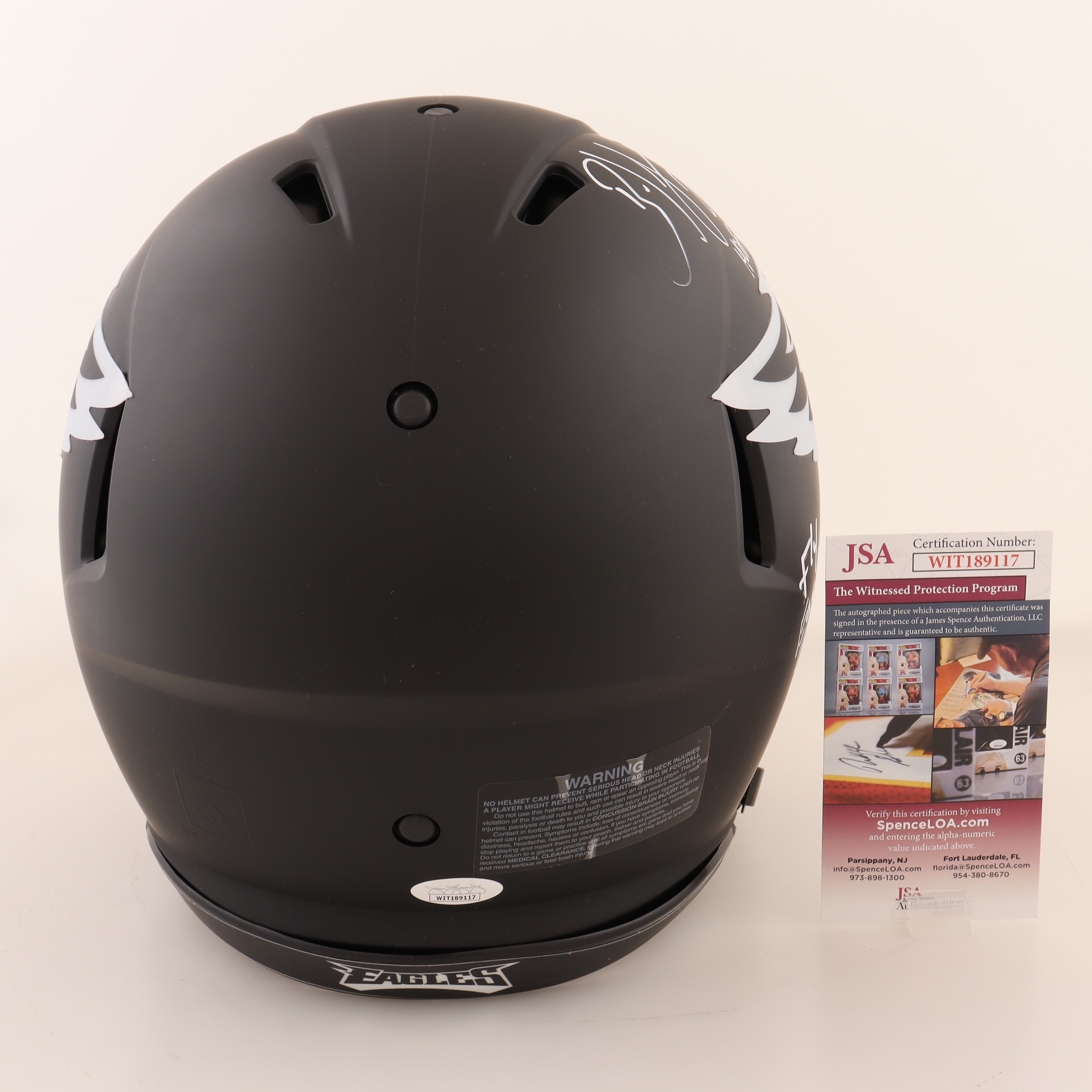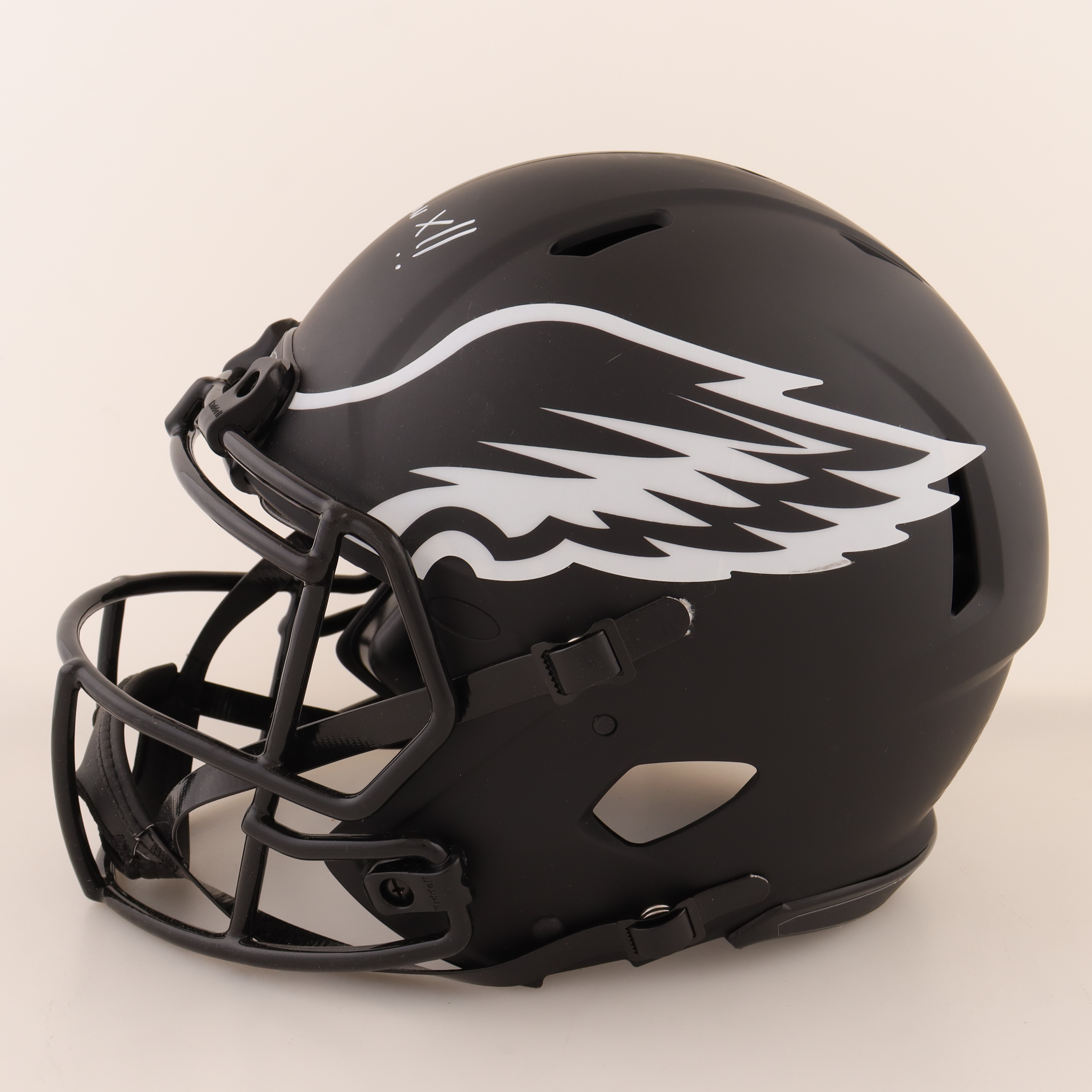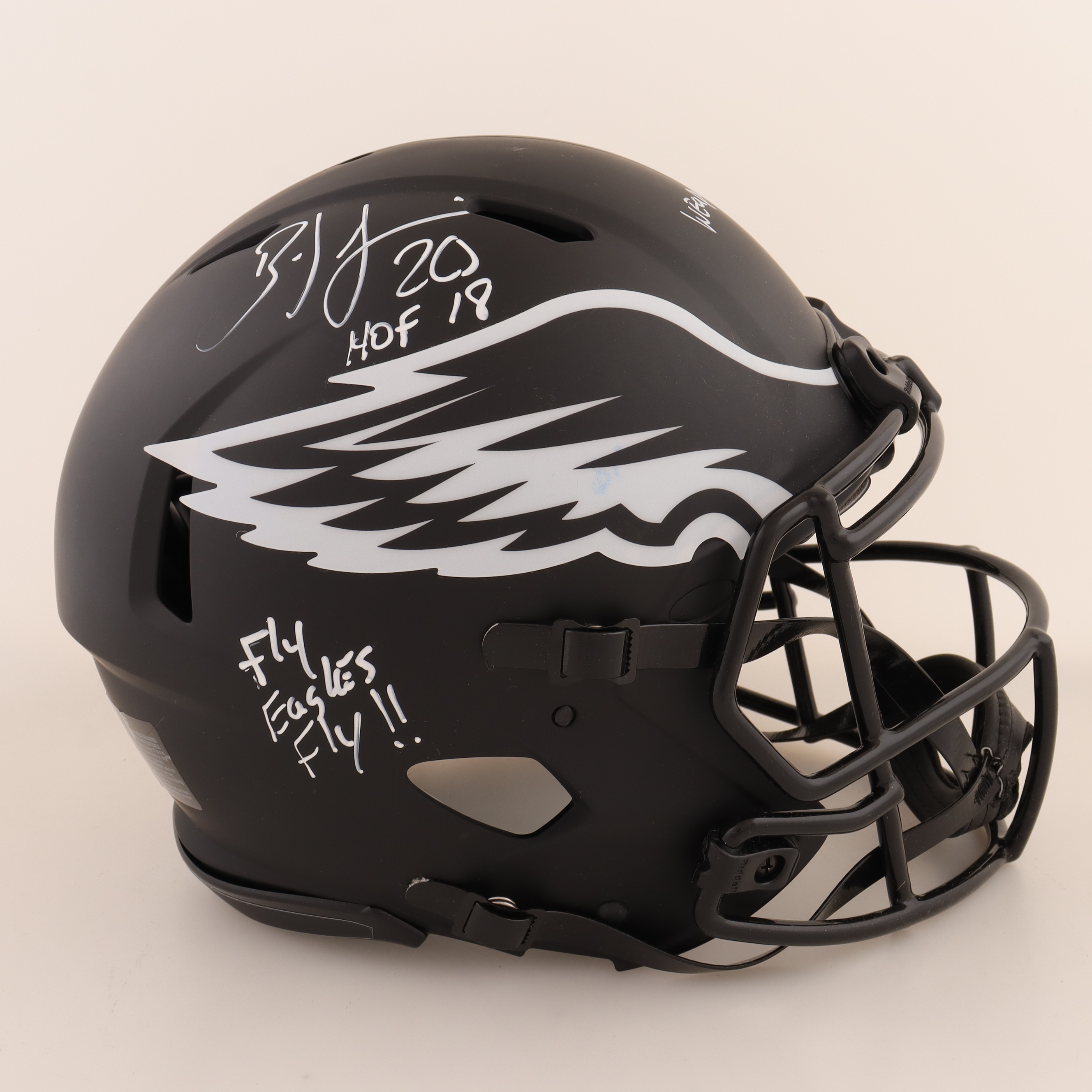 Riddell Philadelphia Eagles full-size authentic on-field Eclipse Alternate speed helmet. Hand-signed and inscribed by Brian Dawkins (HOF).