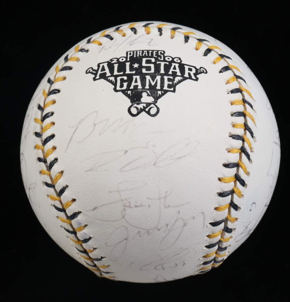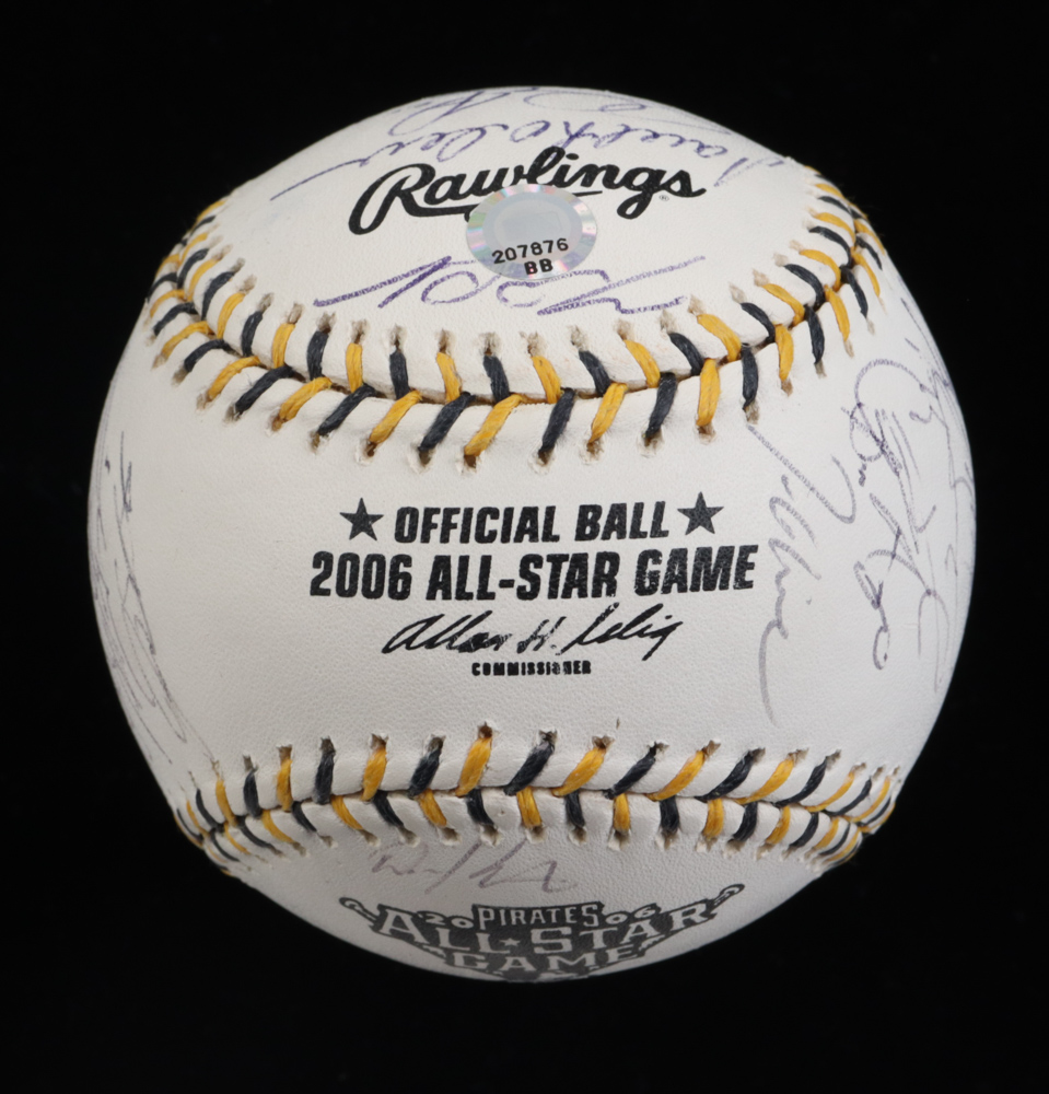 Rawlings Official 2006 All-Star Game Baseball. Baseball has been hand-signed by (28) players that participated in the 2006 All-Star Game. Signers include Albert Pujols, Brad Penny, Brandon Webb, Brian Fuentes, Brian McCann, Bronson Arroyo, Carlos Beltran, Carlos Lee, Chase Utley, Chris Capuano, Chris Carpenter, Dan Uggla, David Eckstein, David Wright #5, Derrick Turnbow, Freddy Sanchez, Jason Bay, Jason Schmidt, Lance Berkman, Matt Holliday, Miguel Cabrera, Nomar Garciaparra, Paul LoDuca, Roy Oswalt, Scott Rolen, Tom Glavine, Tom Gordon, and Trevor Hoffman.
