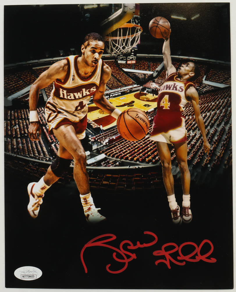 Photo measures 8" x 10" in size and has been hand-signed by Spud Webb (Atlanta Hawks).