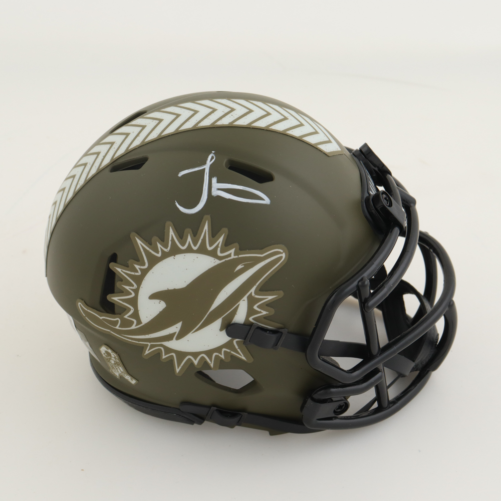 Riddell Miami Dolphins Salute To Service Alternate speed mini helmet. Hand-signed by Tyreek Hill.