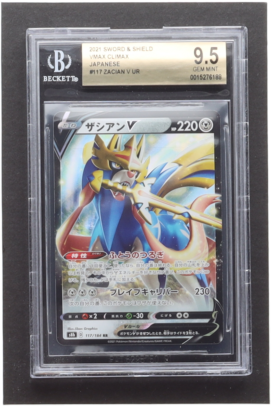 Zacian V 2021 Pokemon Sword and Shield VMAX Climax Japanese #117 (BGS 9.5)