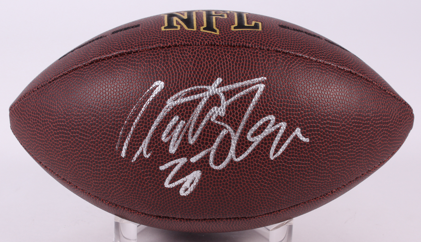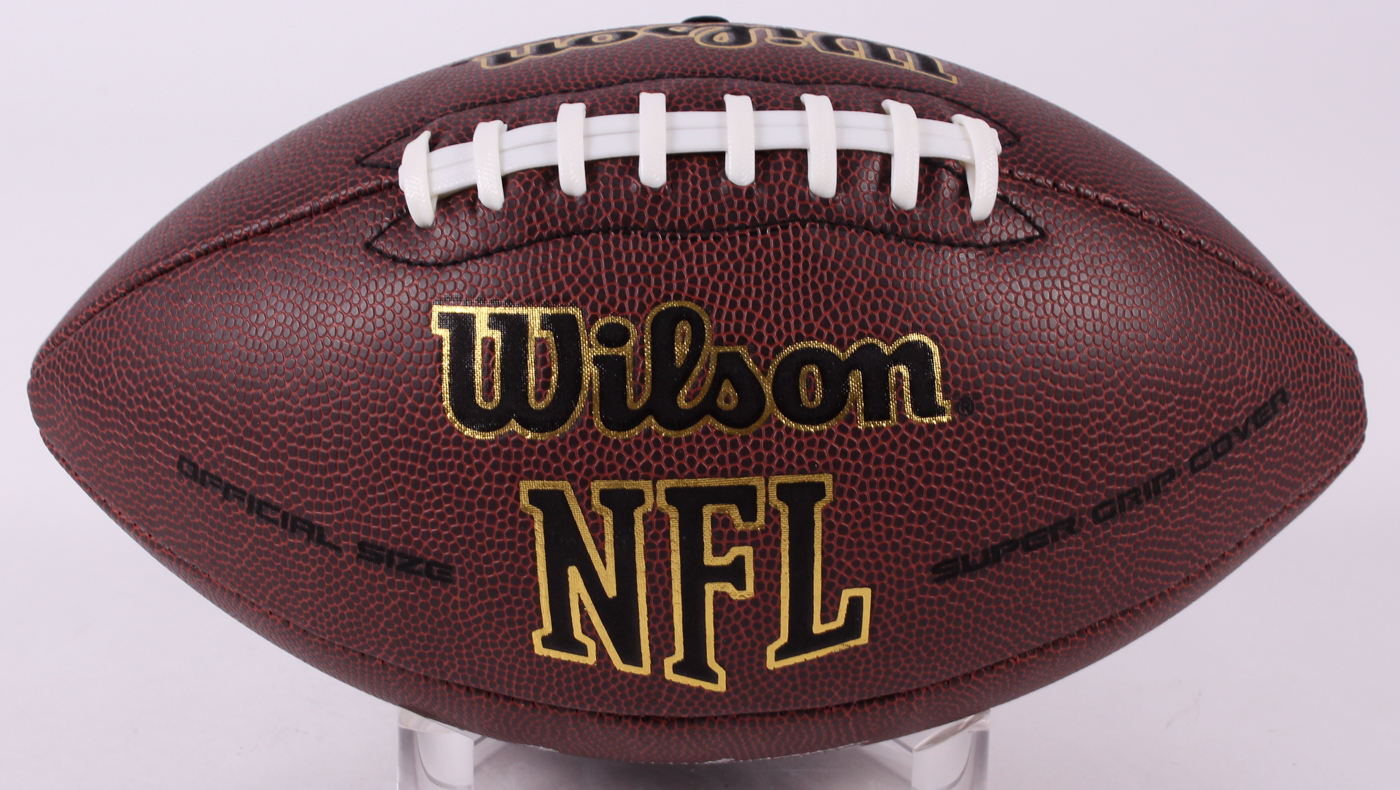 Wilson NFL full-size football. Hand-signed in silver paint pen by Christian Okoye (Chiefs).