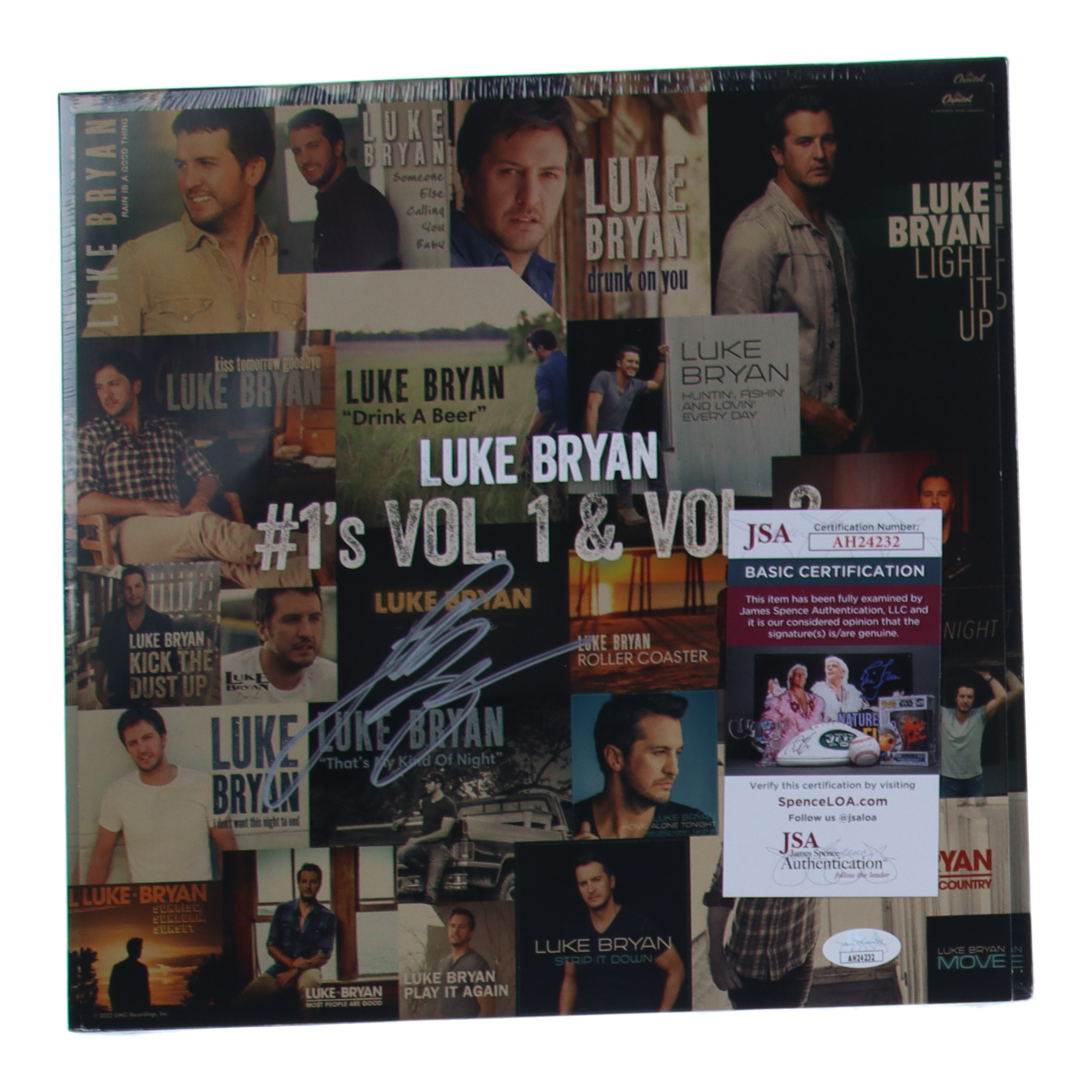 Print measures 12" x 12" in size and has been hand-signed by Luke Bryan. Includes "Luke Bryan #1's Vol. 1 & Vol. 2" sealed vinyl record.