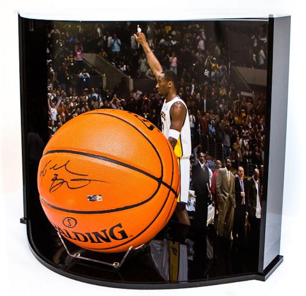 Game Day Legends is proud to bring to you ’The Curve' display case. This unique memorabilia display case will enhance anyone's personal collectibles showroom. With a dynamic appearance thanks to its sleek curved design, this case beautifully highlights your autographed item. Within the curve display is a custom 16 x 20 action photograph. Due to the curved nature of this display, the image is visible from all angles of the display case and perfectly accentuates the signed basketball making this the ultimate collectible and the safest way to display your collectible. You must see this to believe just how beautiful it is.
