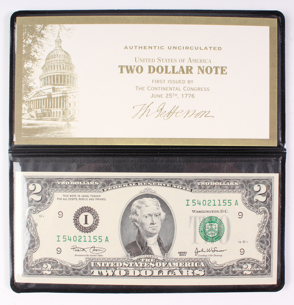 Uncirculated 2003 $2 Two-Dollar Federal Reserve Note with Display Folder