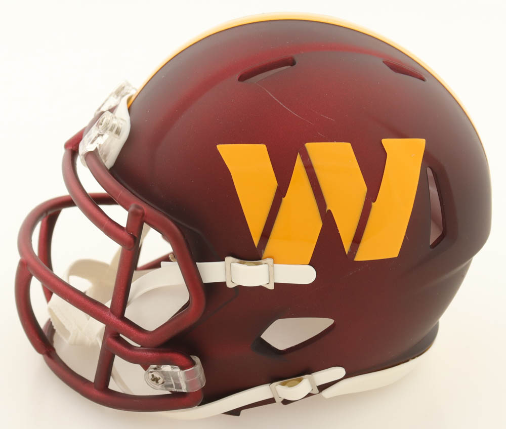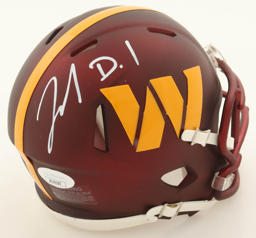 Riddell Washington Commanders speed mini helmet has been hand-signed by Jahan Dotson.