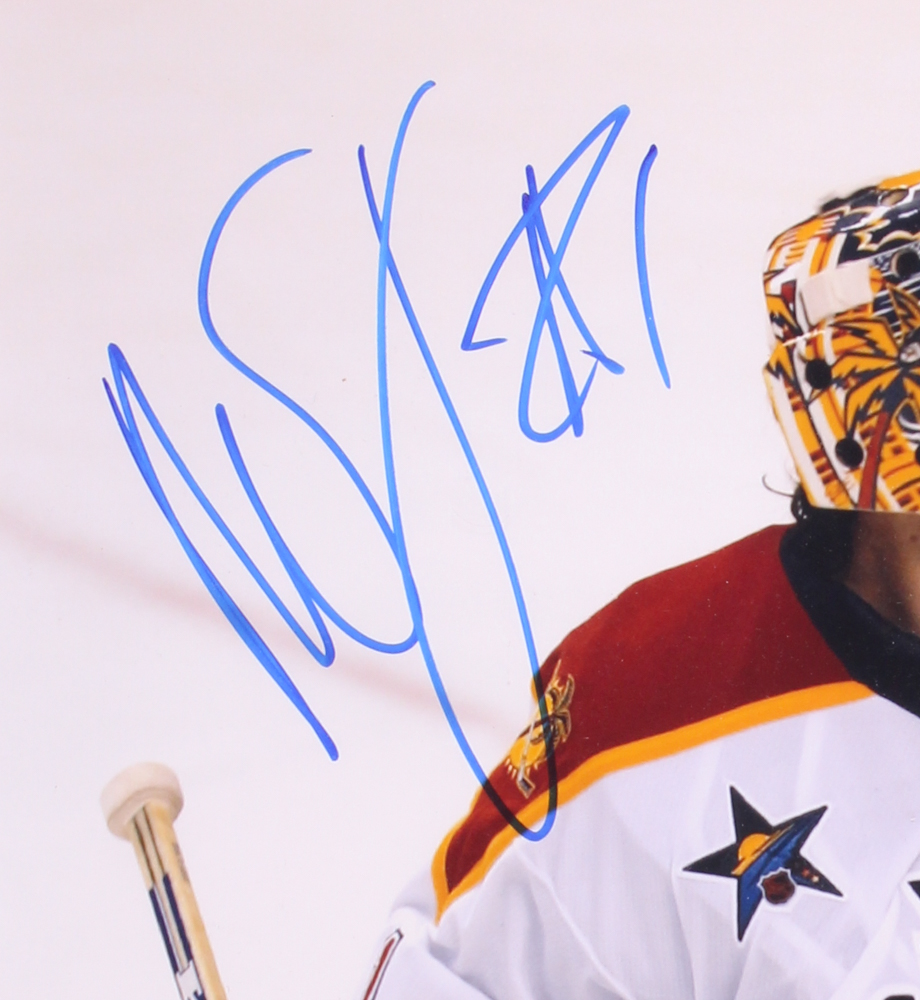 Photo measures 16" x 20" photo has been hand-signed in blue felt-tip pen by Roberto Luongo (Panthers).