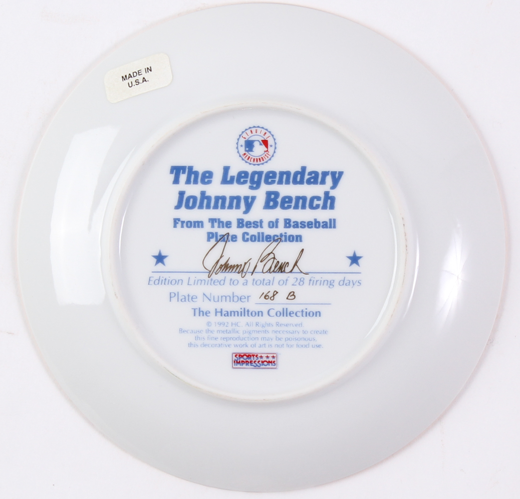 1992 Johnny Bench LE Sports Impressions Porcelain Plate (Hamilton COA)