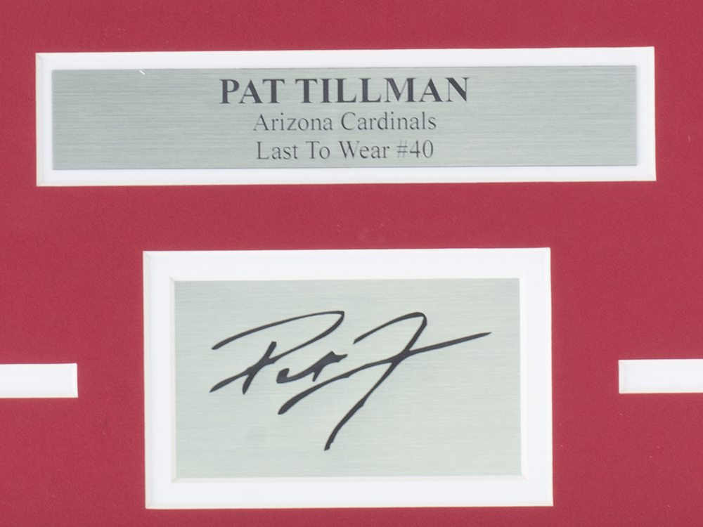 Custom frame measures 8" x 10" in size and features an unsigned photo of Pat Tillman (D. 2004, Arizona Cardinals). Please note, the signature is a laser engraved facsimile.