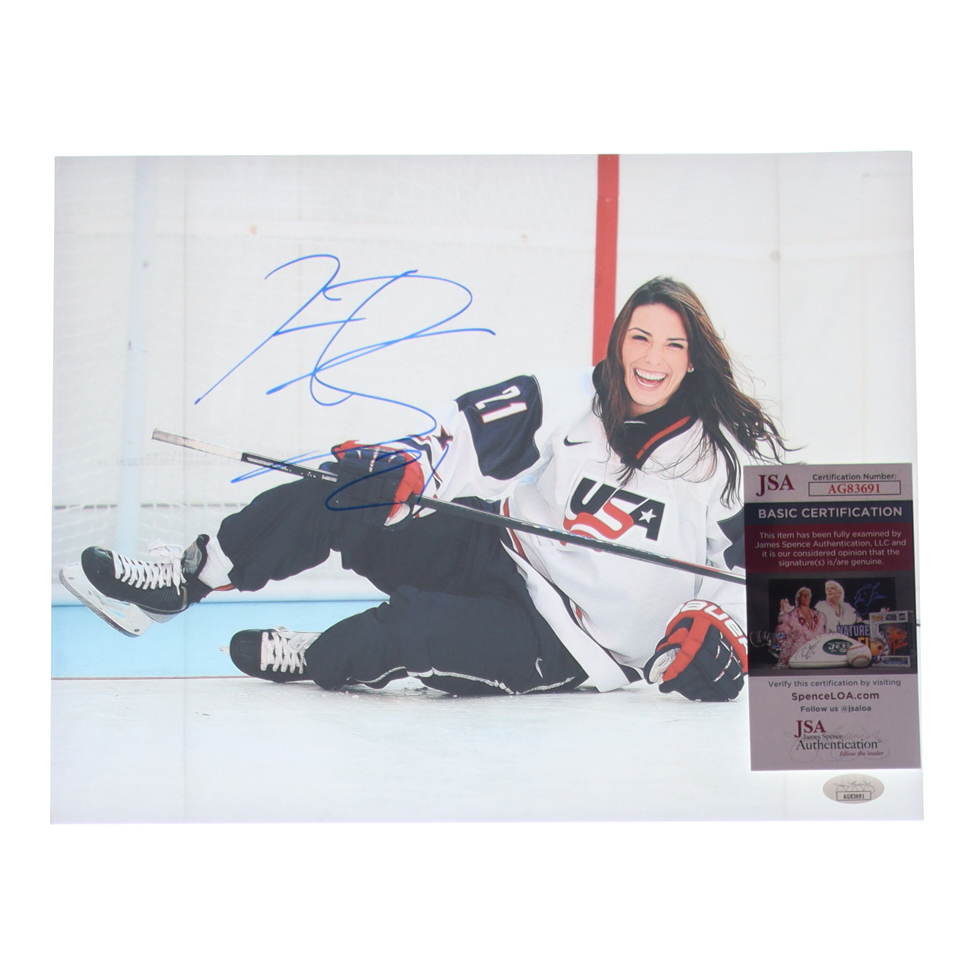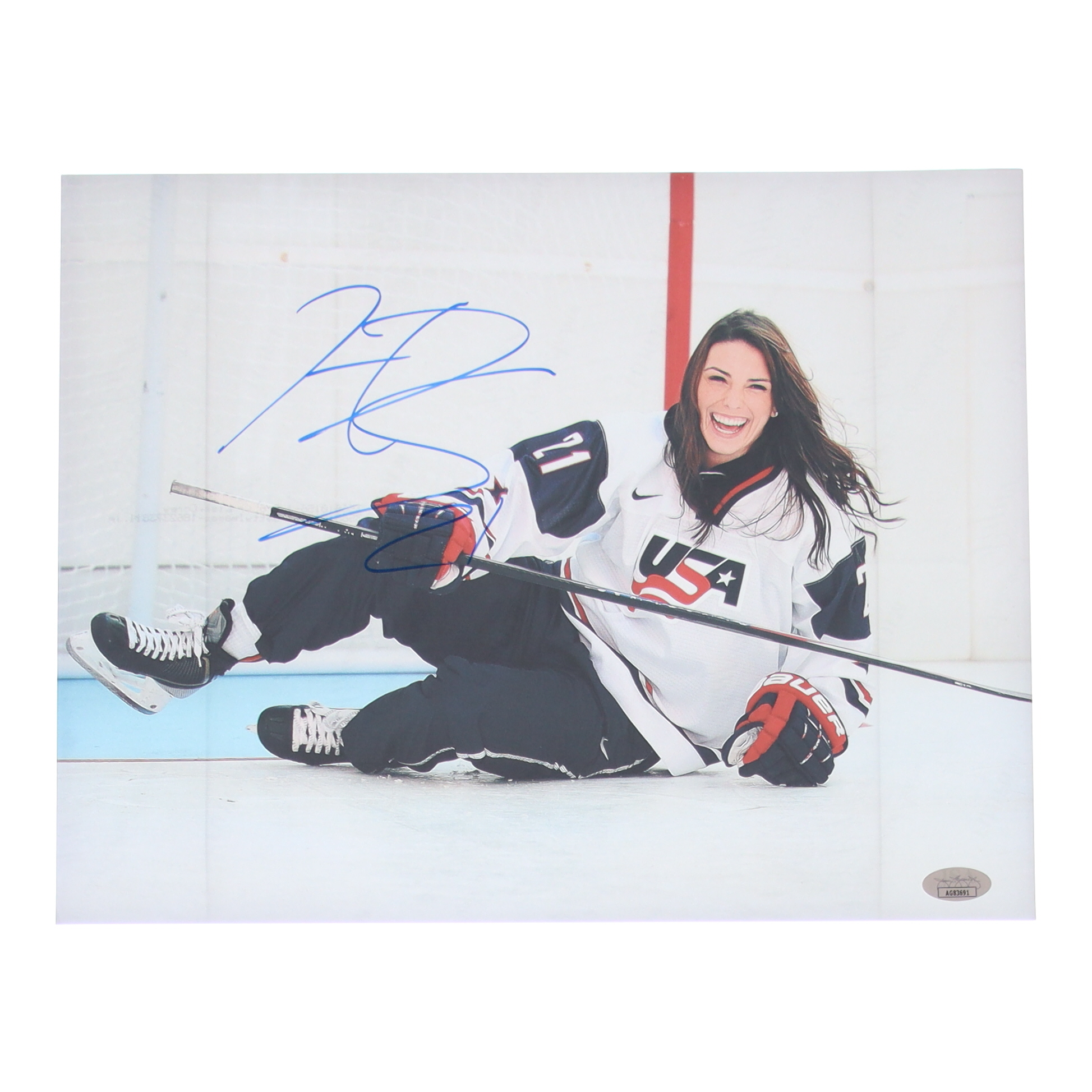 Photo measures 11" x 14" in size and has been hand-signed by Hilary Knight (Team USA).