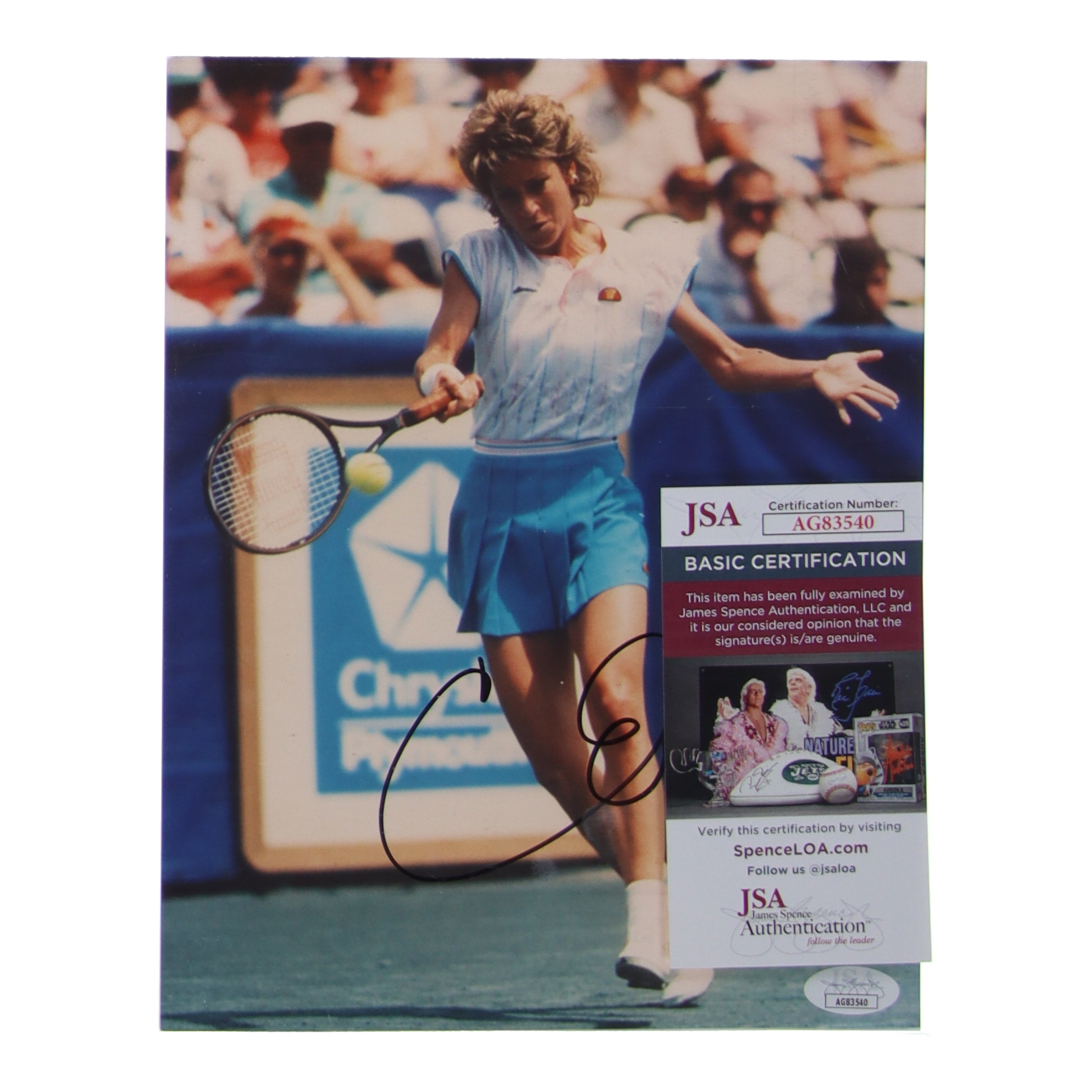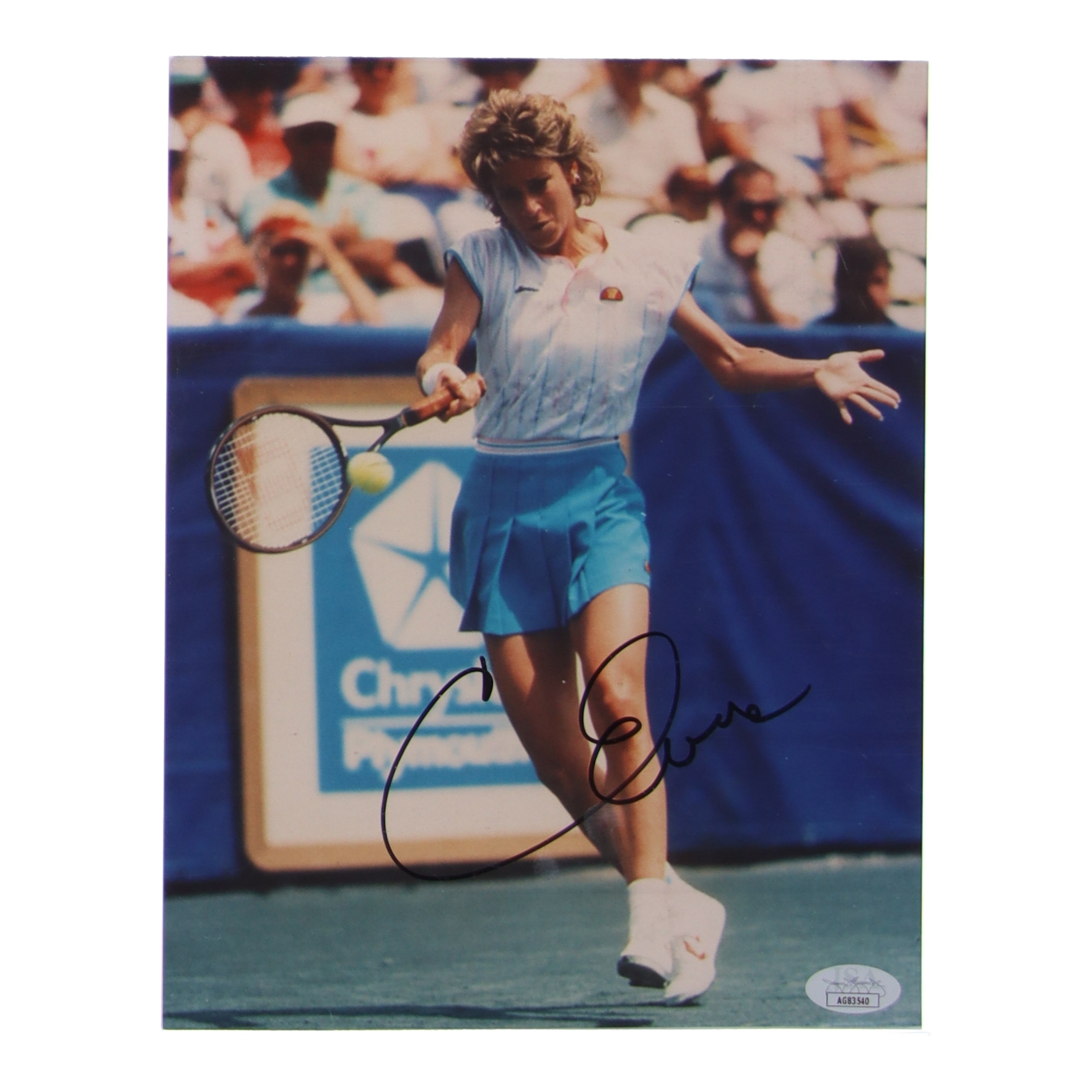Photo measures 8" x 10" in size and has been hand-signed by Chris Evert.