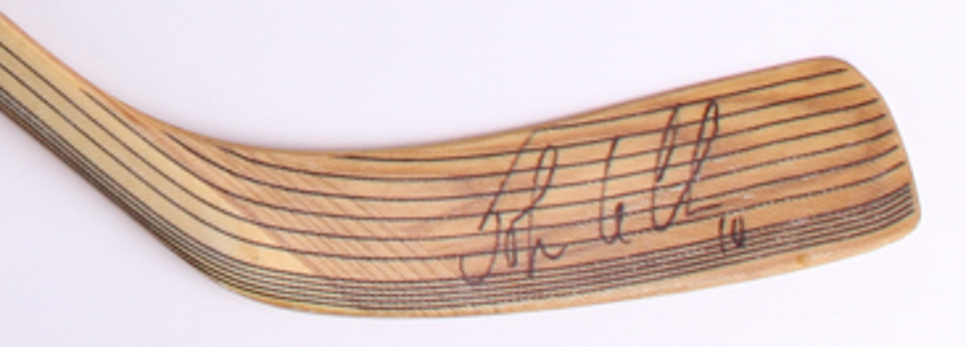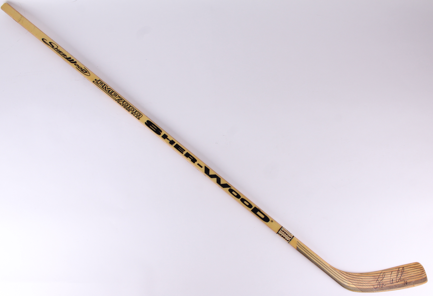 Sher-Wood full-size hockey stick. Hand-signed in black felt-tip pen by John LeClair (Canadiens, Penguins).