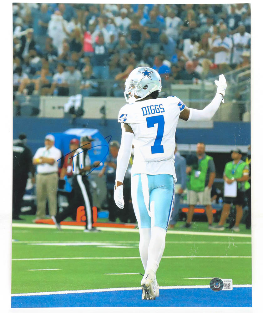 Photo measures 11" x 14" in size and has been hand-signed by Trevon Diggs (Dallas Cowboys).