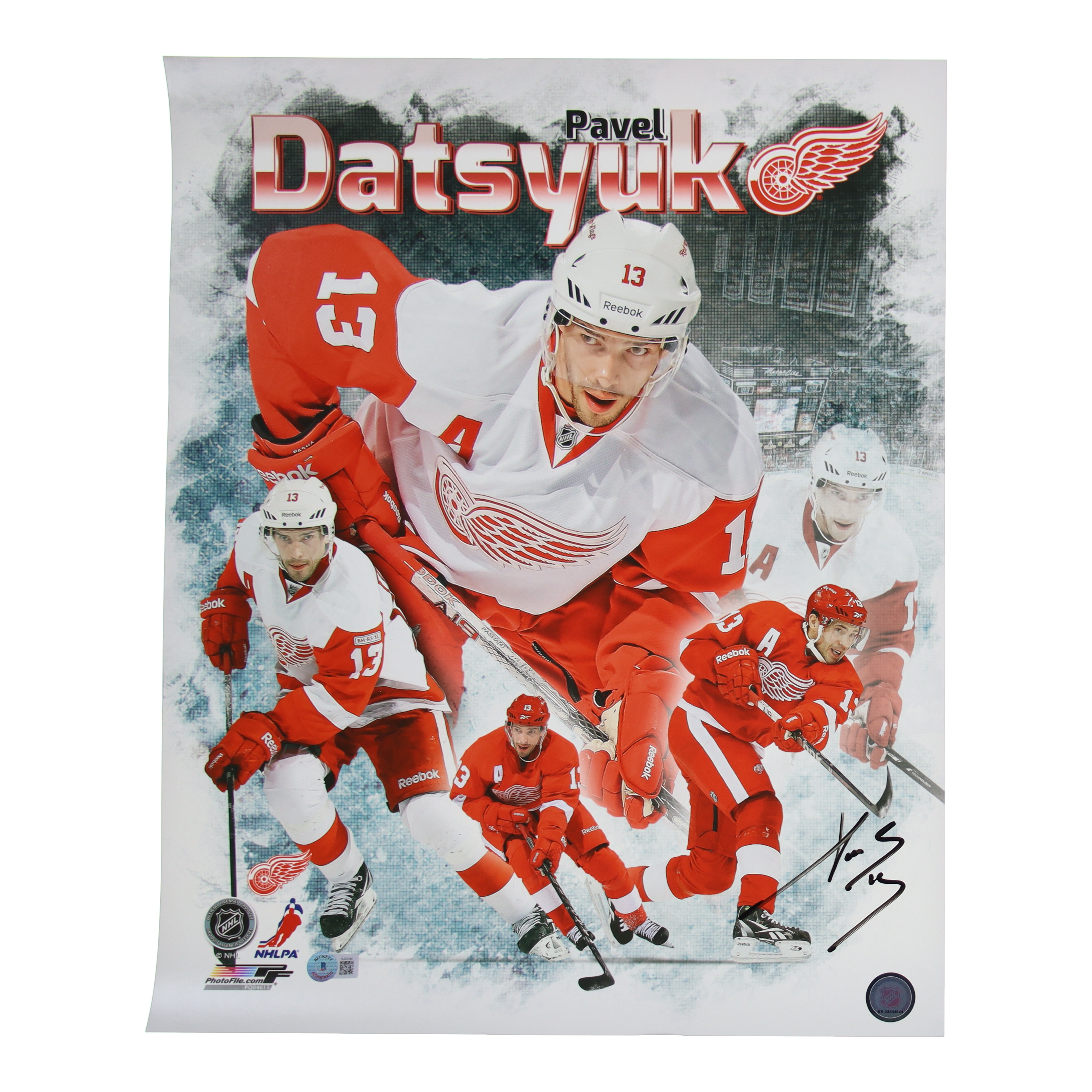 Photo measures 16" x 20" in size and has been hand-signed by Pavel Datsyuk (Detroit Red Wings).