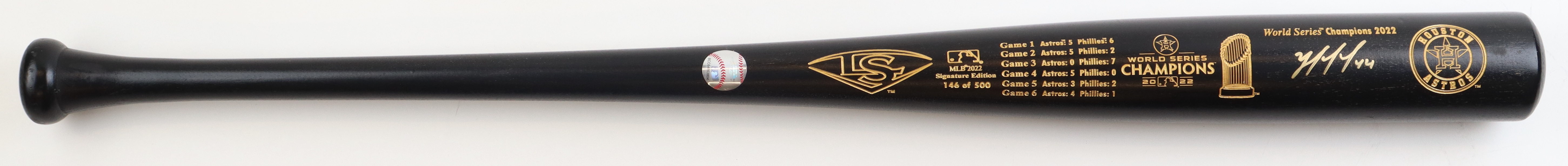 LE 2022 World Series Championship Louisville Slugger baseball bat. Hand-signed by Yordan Alvarez (Houston Astros). The baseball bat is numbered limited edition and has been numbered #146/500.