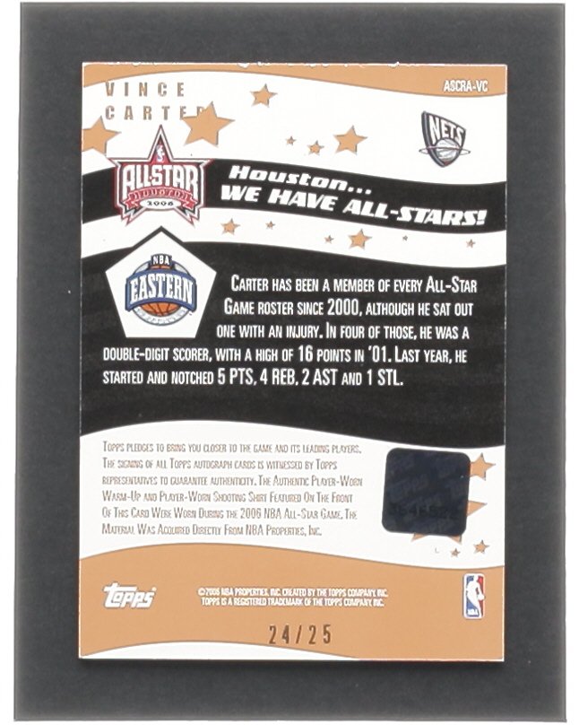 Vince Carter 2006-07 Topps Big Game All-Star Rally Relics Dual Autographs #VC #24/25