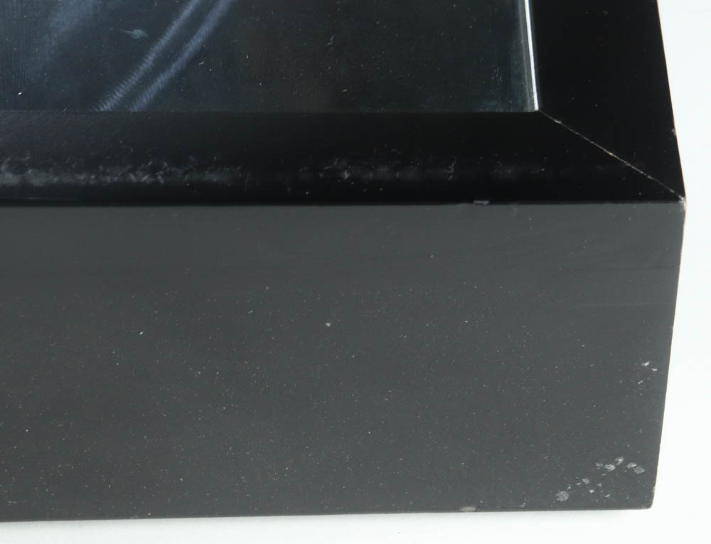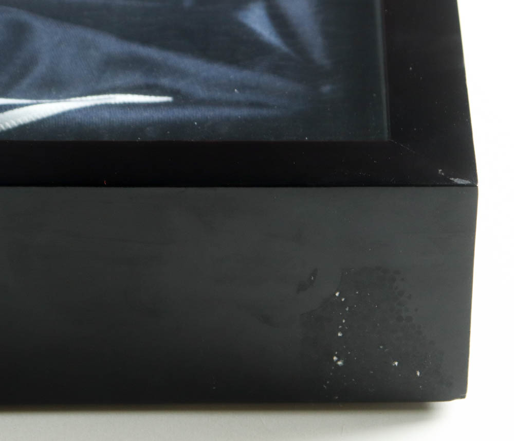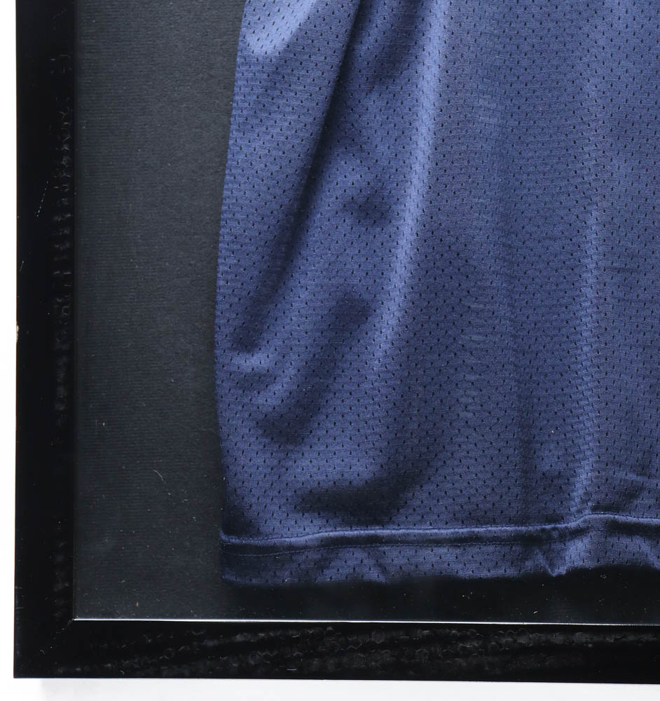 Custom shadowbox measures 25.5" x 37.5" x 4" in size. Features a jersey that has been hand-signed by Troy Aikman (HOF). Please note, there is staining, scuffing and residue on the borders of the frame.