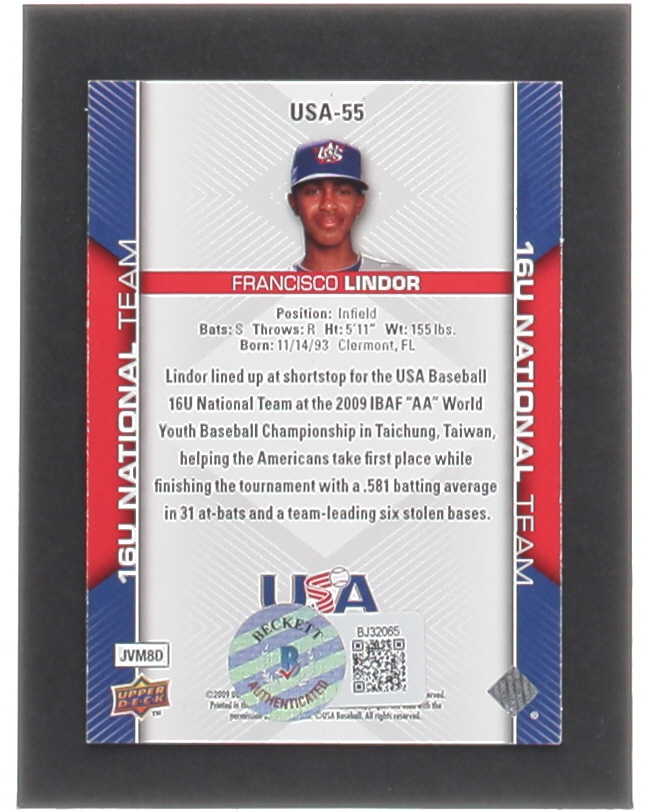 Francisco Lindor Signed 2009-10 USA Baseball #USA55 (Beckett)