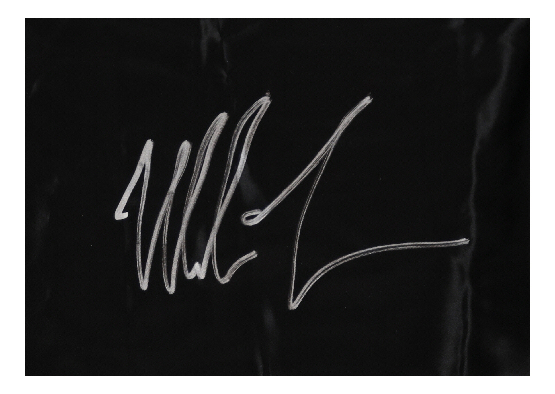 Custom boxing trunks, size XL. Hand-signed and inscribed by Mike Tyson (HOF).