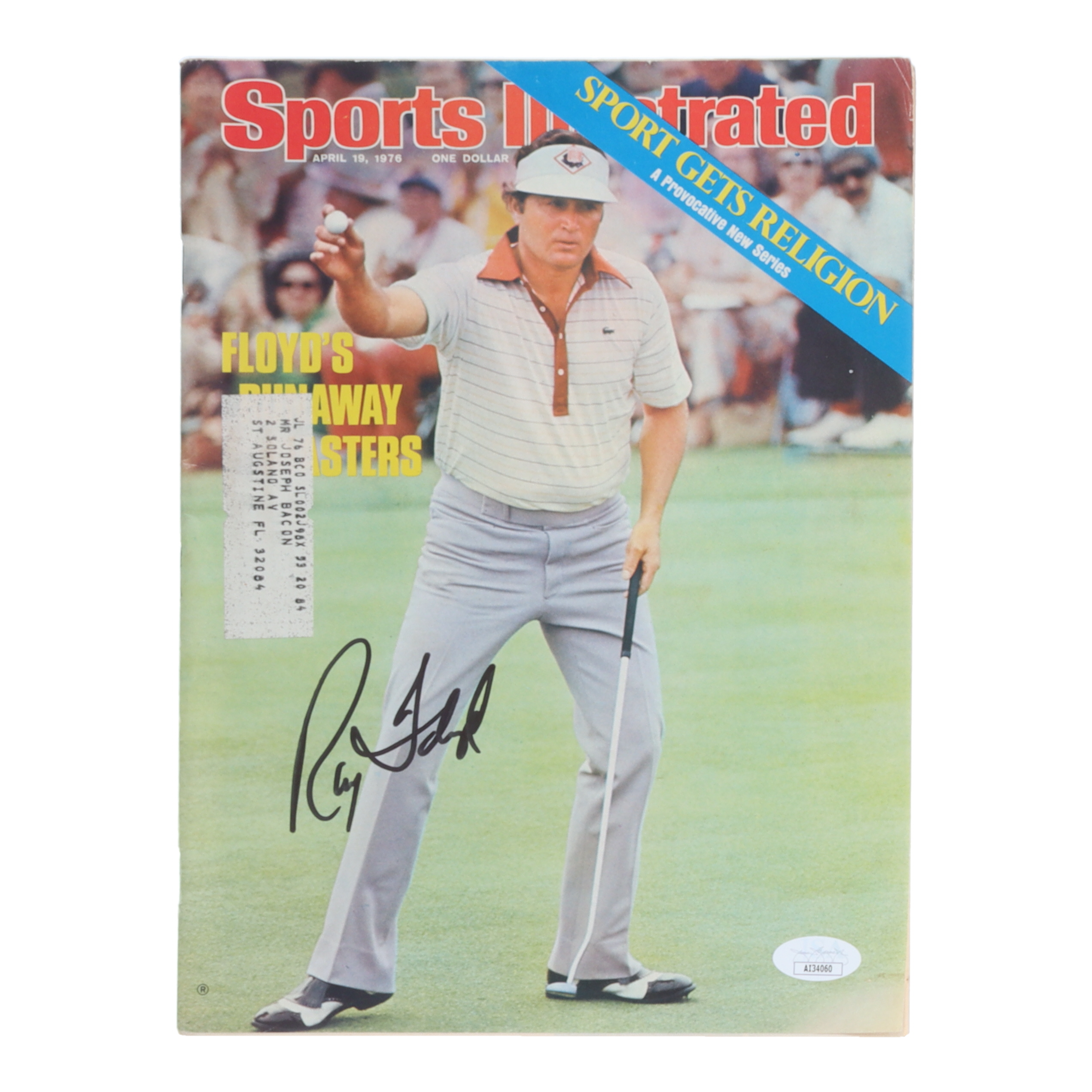 April 19, 1976 issue of "Sports Illustrated" magazine has been hand-signed on the front cover by Raymond Floyd (HOF). Please note, the magazine shows signs of natural aging.