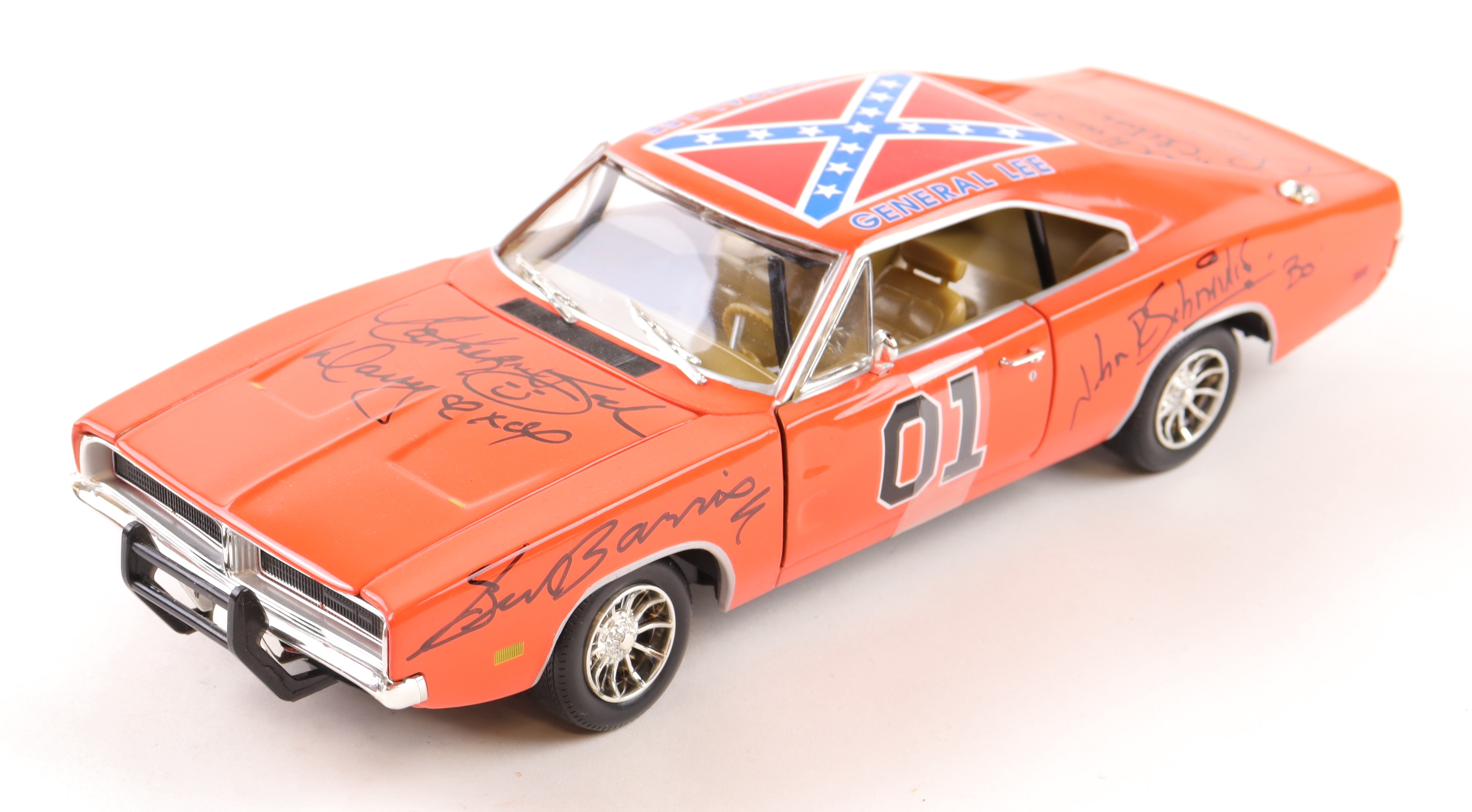Catherine Bach, Tom Wopat & John Schneider Signed "The Dukes Of Hazzard" General Lee #01 1969 Dodge Charger 1:18 Premium Diecast Car with Multiple Inscriptions (Beckett)