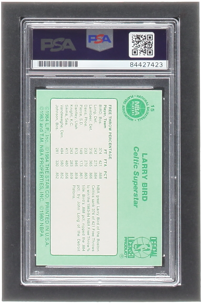 Larry Bird Signed 1984 Star Larry Bird #15 / 1984 Free Throw Leader (PSA)