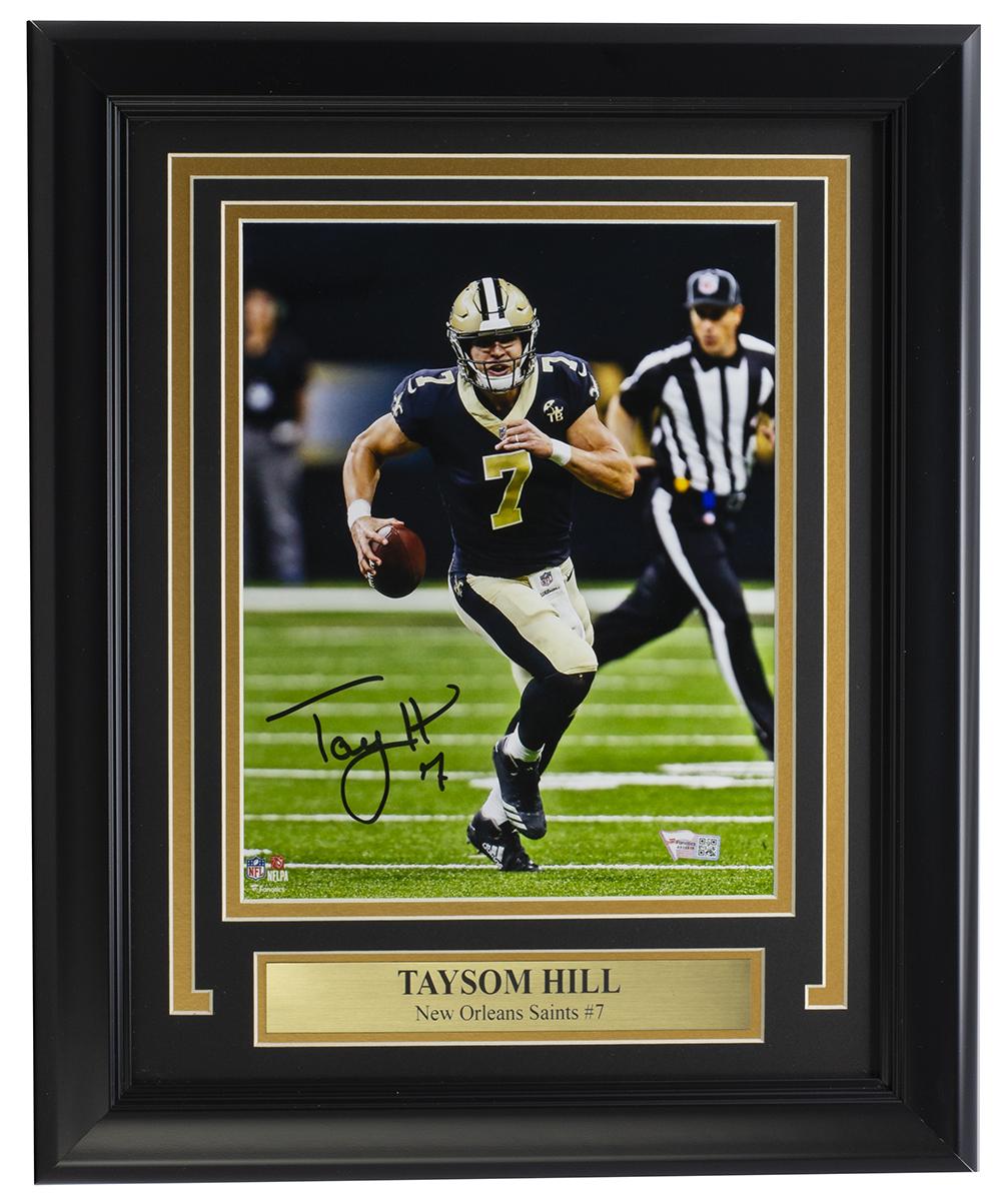 Frame measures 11" x 14" in size and features a photo that has been hand-signed by Taysom Hill (New Orleans Saints).