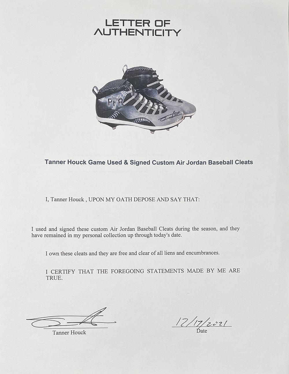 Jordan baseball cleats have been hand-signed by Tanner Houck (Boston Red Sox). Please note, Houck has signed both cleats.