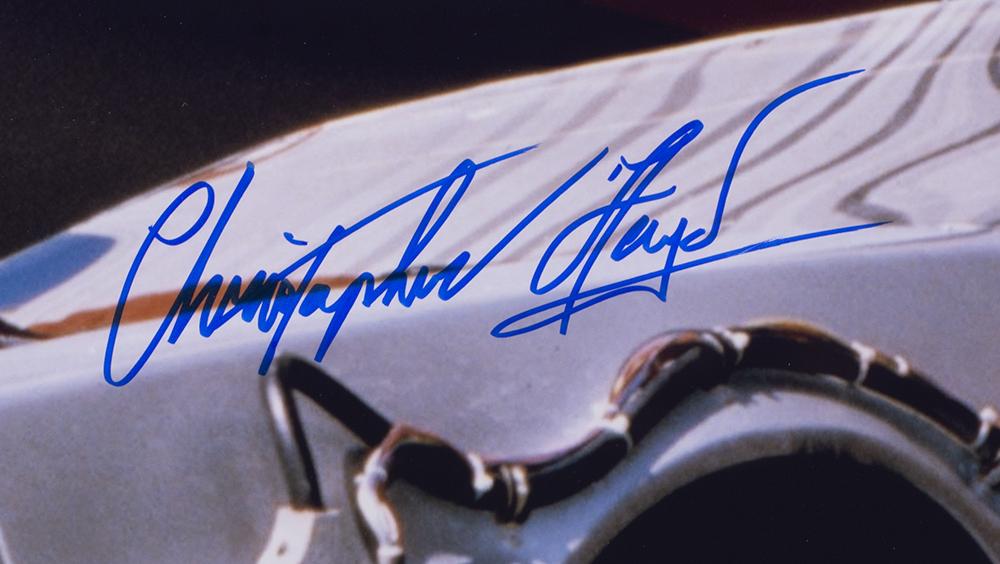 Custom frame measures 24" x 30" in size and features a photo that has been hand-signed by Christopher Lloyd (Doc Brown).
