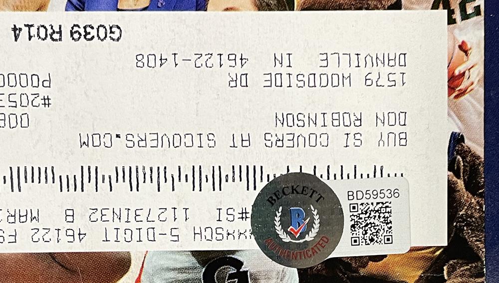 The autograph includes an official Beckett Authentication Services serially-numbered hologram and matching COA for authenticity purposes.