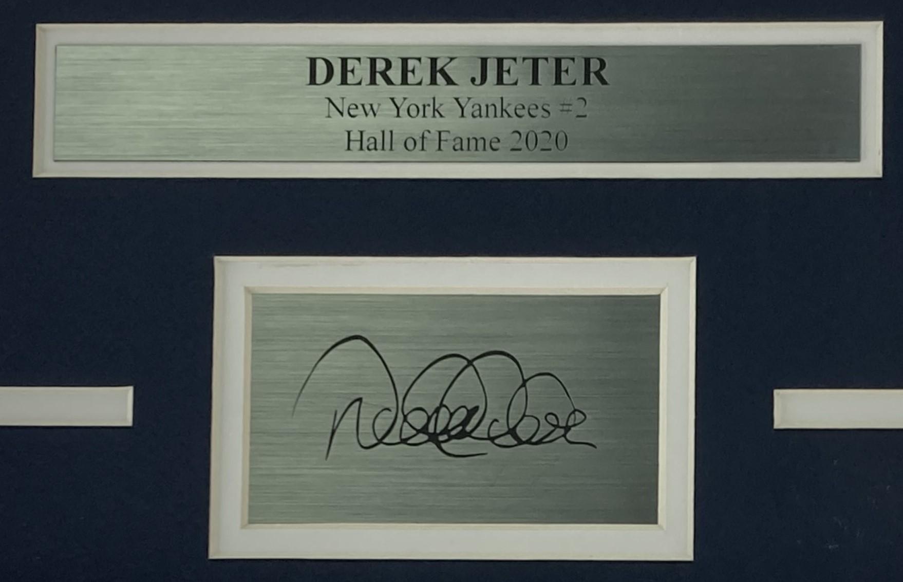 Custom frame measures 20" x 20" in size and features an unsigned photo of Derek Jeter (New York Yankees, HOF). Please note, the signature is a laser engraved facsimile.