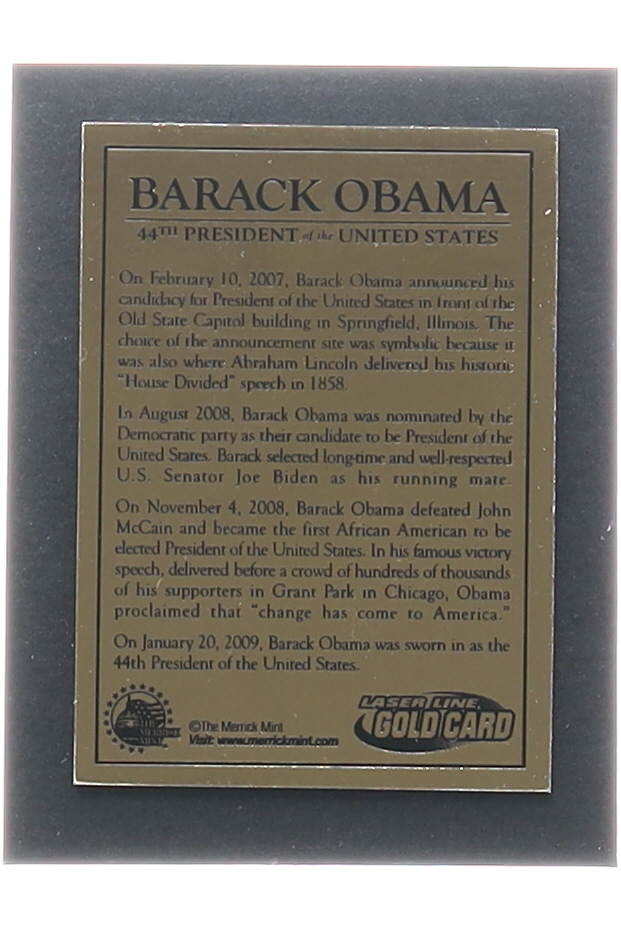 Barack Obama 2009 Merrick Mint Laser Line Holographic Signature Series Inauguration Day 23Kt Gold Card