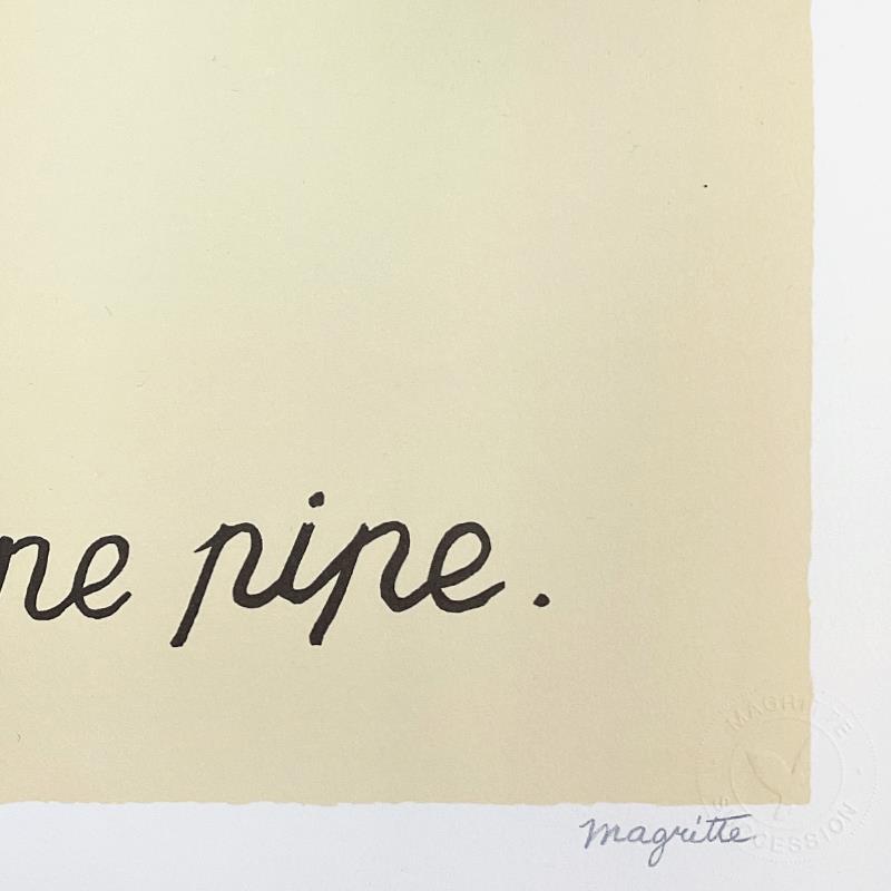 "La Trahison des Images" is a limited edition lithograph by Rene Magritte (1898-1967). This piece is numbered 88/275 and bears the dry stamps of the Magritte Foundation & ADAGP (Society of Authors in the Graphic and Plastic Arts) and is signed by the President of the Magritte Foundation, Charly Herscovici. This piece comes custom framed. Includes Certificate of Authenticity. Measures approx. 26" x 23.5" (frame), 20" x 17.5" (image).