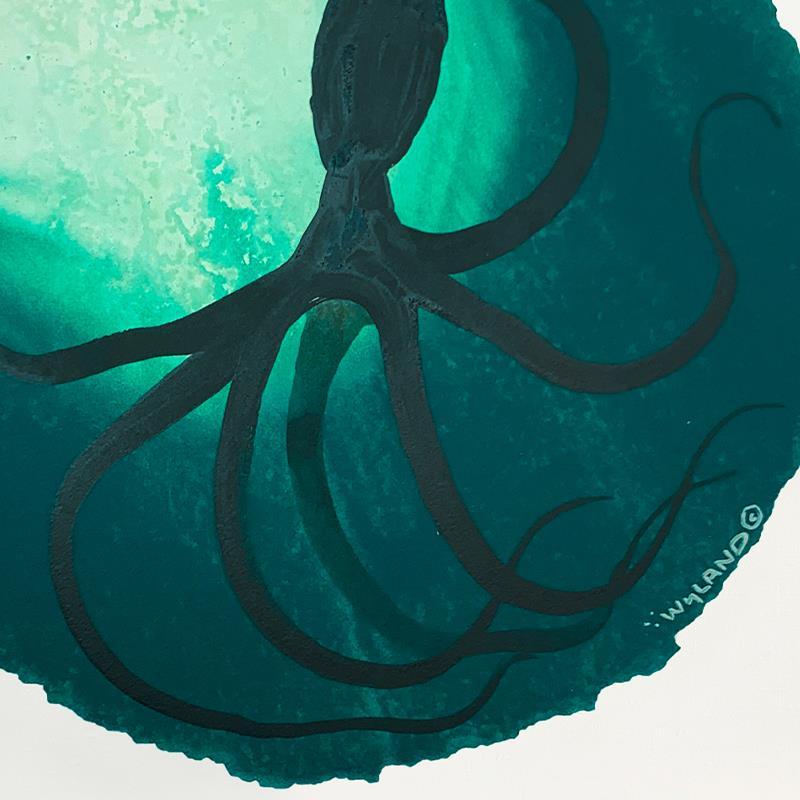 "Green Octopus Swirl" is an original painting, watercolor on deckle edge paper by Wyland. Hand-signed by the artist, the piece comes custom framed and with a letter of authenticity. Measures approximately 30" x 30" (framed), 19.5" x 19.5" (image).