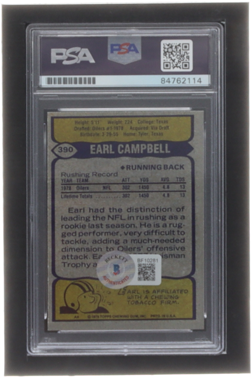 Earl Campbell Signed 1979 Topps #390 Reprint RC Inscribed "HOF 91" (PSA & Beckett)