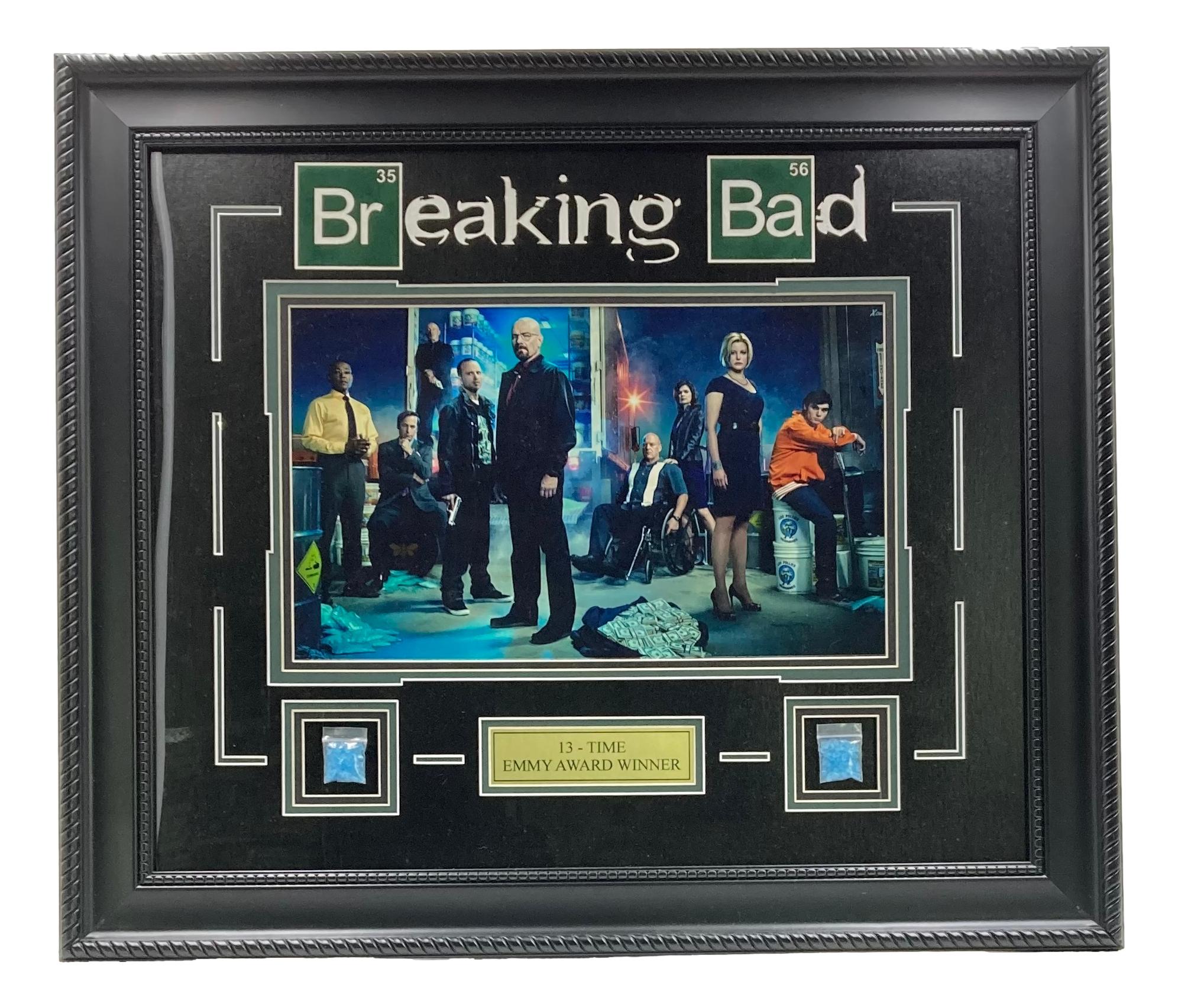 Custom frame measures approximately 24" x 28" in size and features an unsigned photo of "Breaking Bad". Please note, these are just props in the frame.