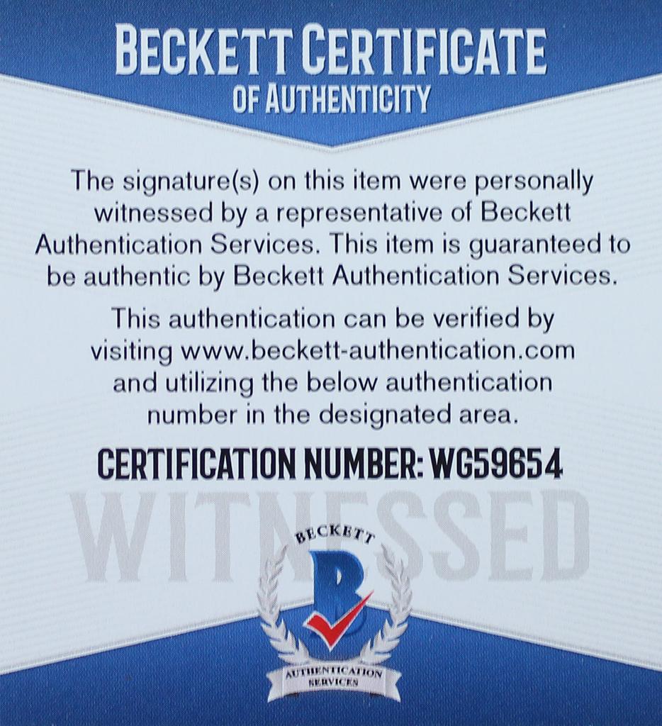 The autograph includes an official Beckett Authentication Services serially-numbered hologram and matching COA for authenticity purposes.