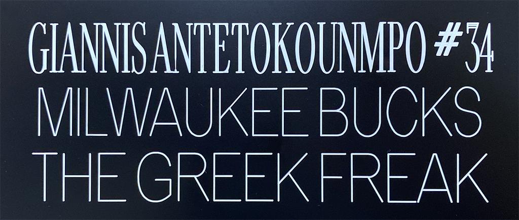 Custom framed jersey display measures 35" x 43' in size and features a jersey that has been hand-signed by Giannis Antetokounmpo (Milwaukee Bucks).