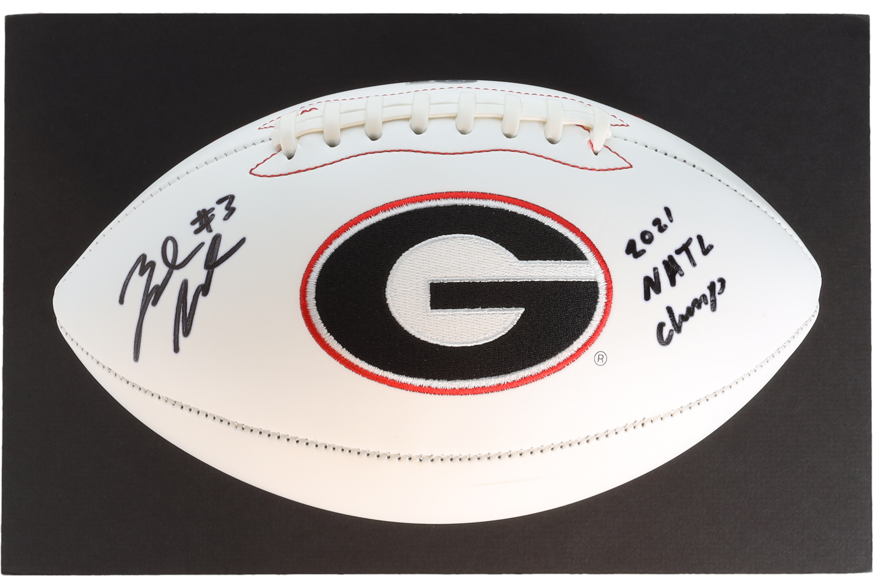 Georgia Bulldogs logo football. Hand-signed and inscribed by Zamir White.