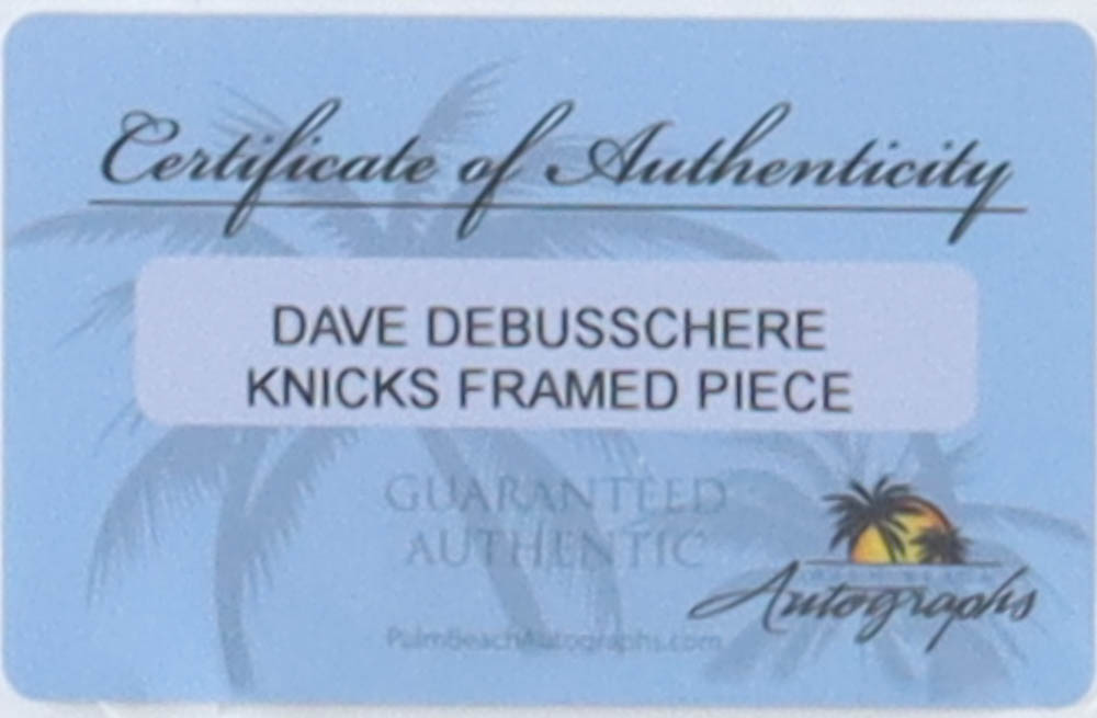 The custom framed display measures 15" x 21" in size and features a cut that has been hand-signed by Dave DeBusschere (D. 2003, New York Knicks, HOF).