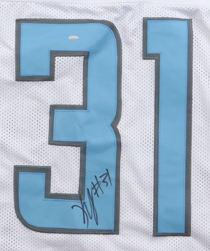 Custom on-field style jersey. Everything is sewn on, size XL. Hand-signed by Kerby Joseph.