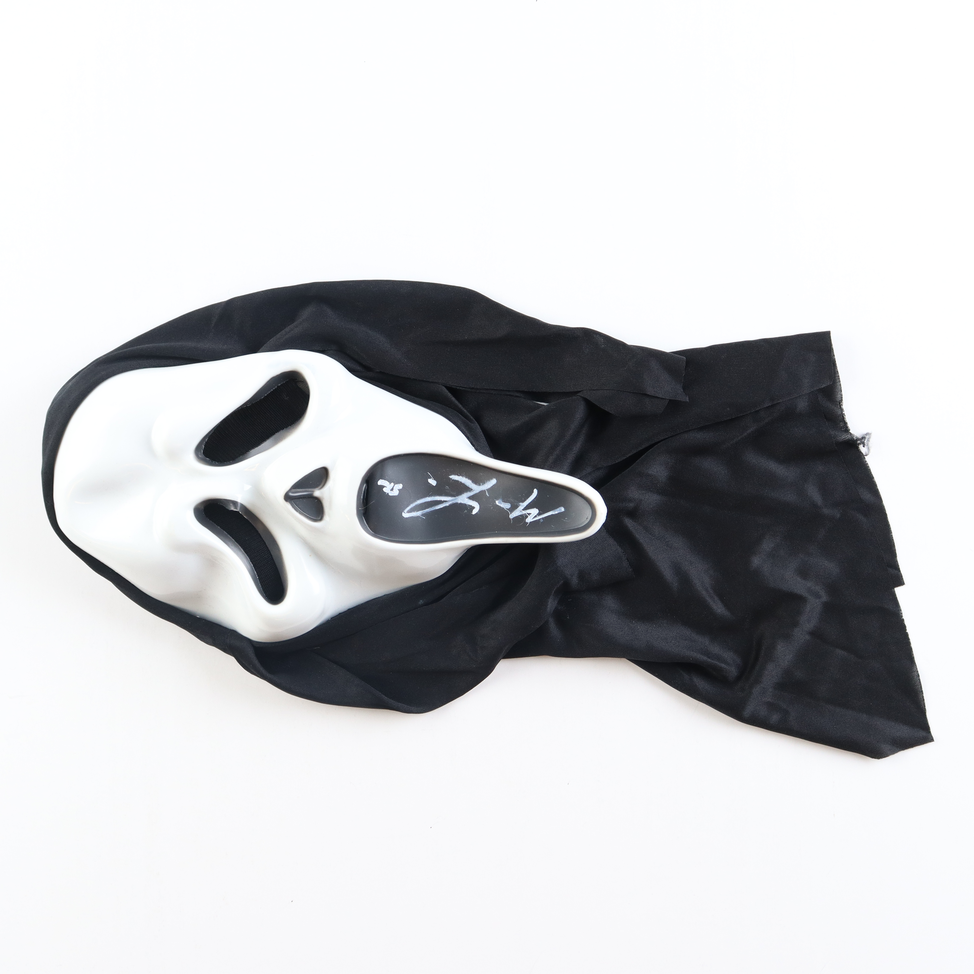 "Scream" Ghostface mask has been hand-signed and inscribed by Matthew Lillard (Stu Macher). Please note, the signature is smudged.