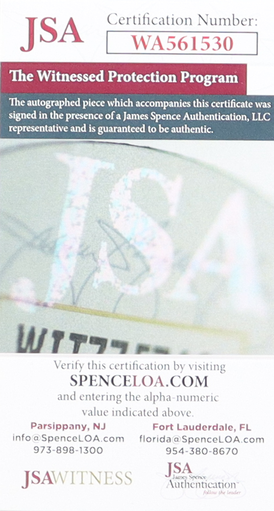 The autograph includes an official James Spence Authentication (JSA) hologram and matching COA for authenticity purposes. The signing of this item was witnessed by JSA.