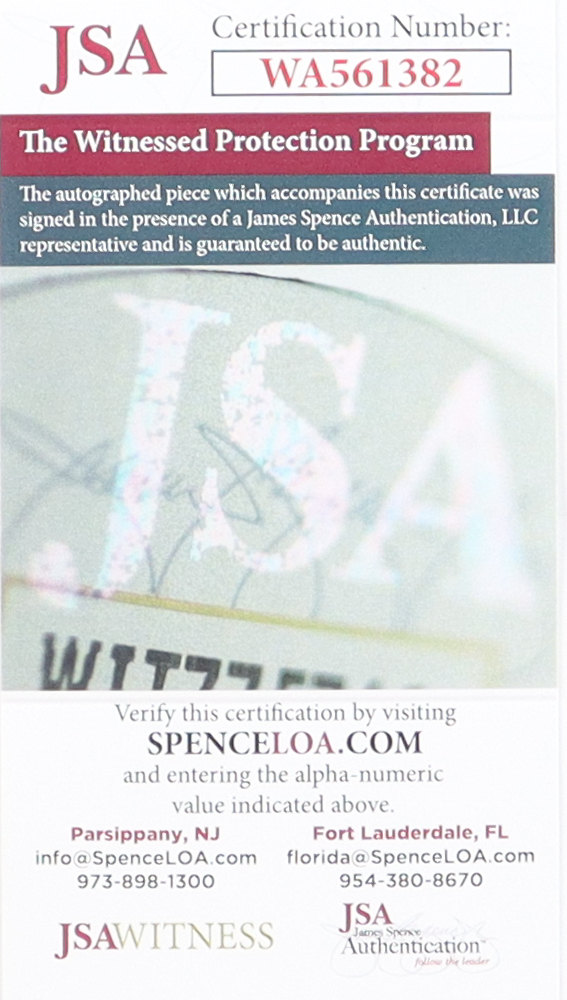 The autograph includes an official James Spence Authentication (JSA) hologram and matching COA for authenticity purposes. The signing of this item was witnessed by JSA.
