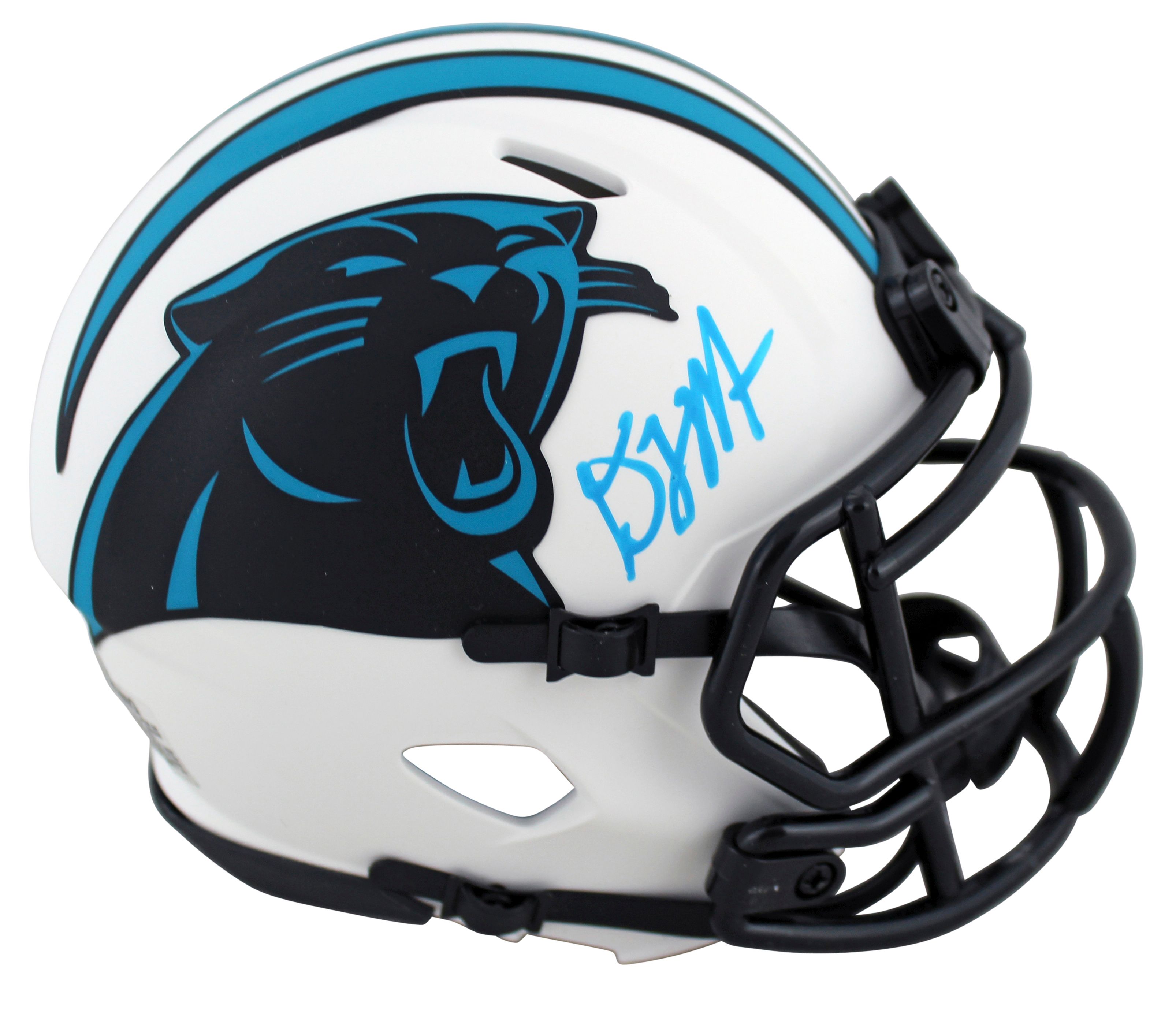 Riddell Carolina Panthers Lunar Eclipse Alternate Speed mini helmet has been hand-signed by D.J. Moore.