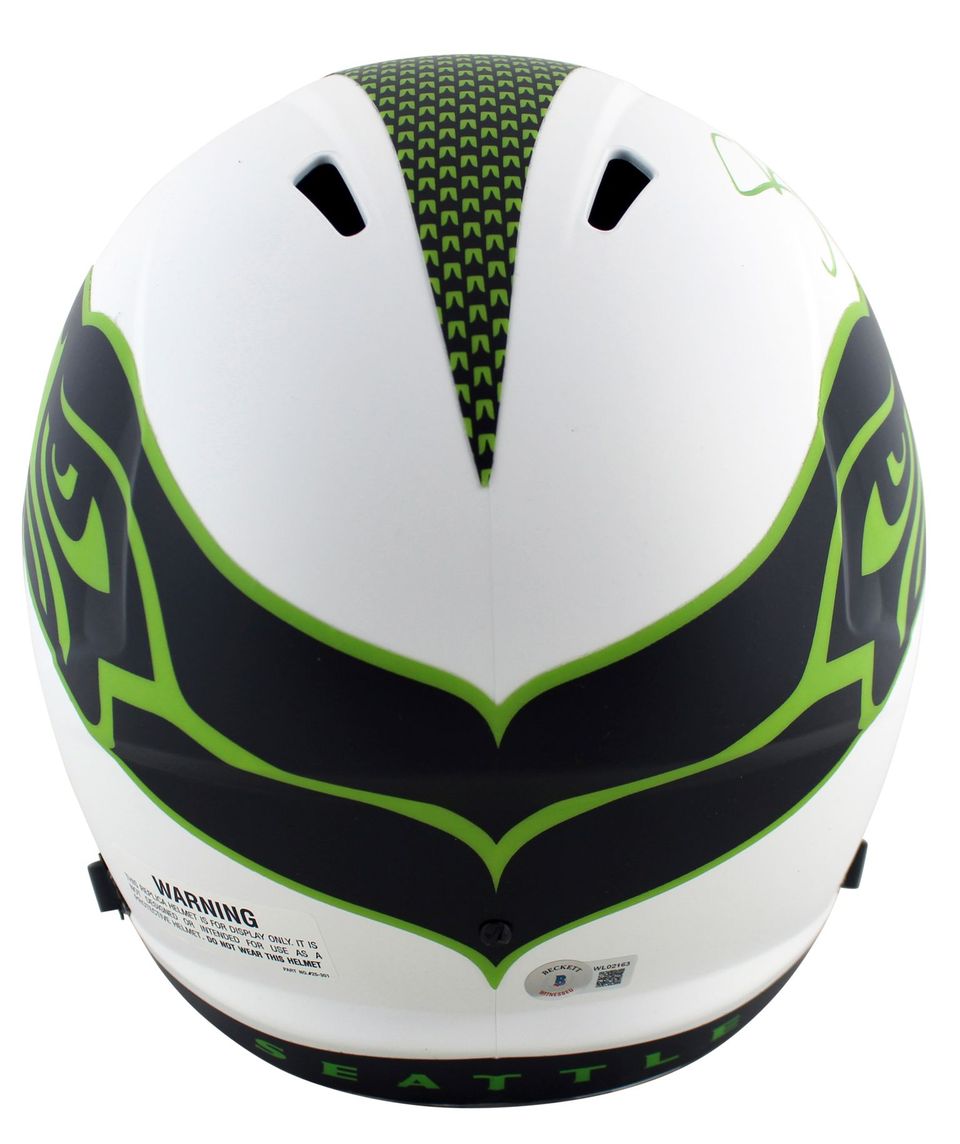Riddell Seattle Seahawks full-size replica lunar Eclipse Alternate Speed helmet. Hand-signed and inscribed by Shaun Alexander.