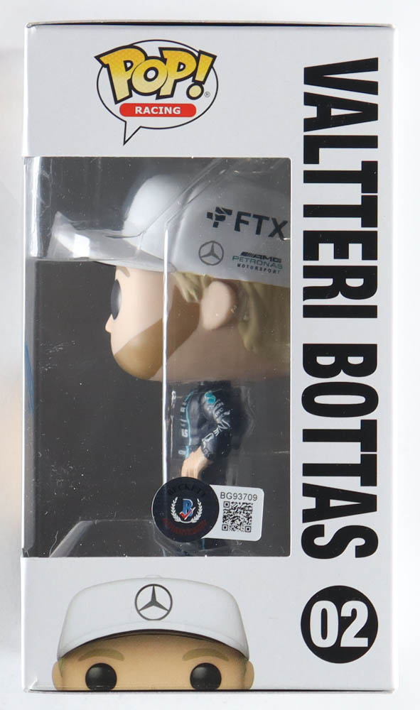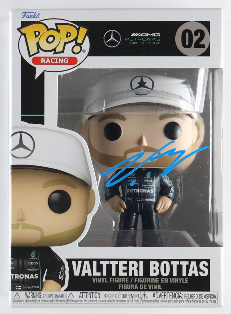 Funko Pop! figure measures approximately 4" tall and the packaging has been hand-signed by Valtteri Bottas.